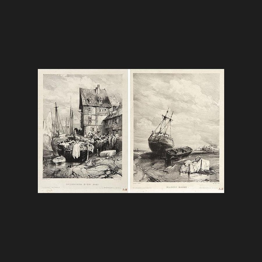Eugène ISABEY, Intérieur d'un port, aquarelle et gouache