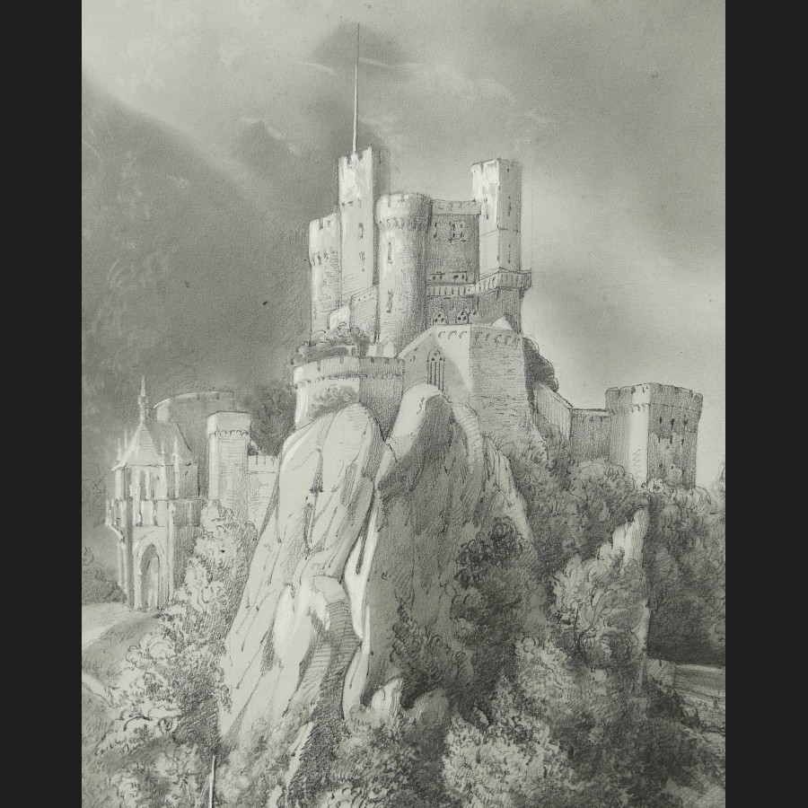 École FRANÇAISE du XIXème siècle, Château de Rheinstein sur le Rhin, dessin