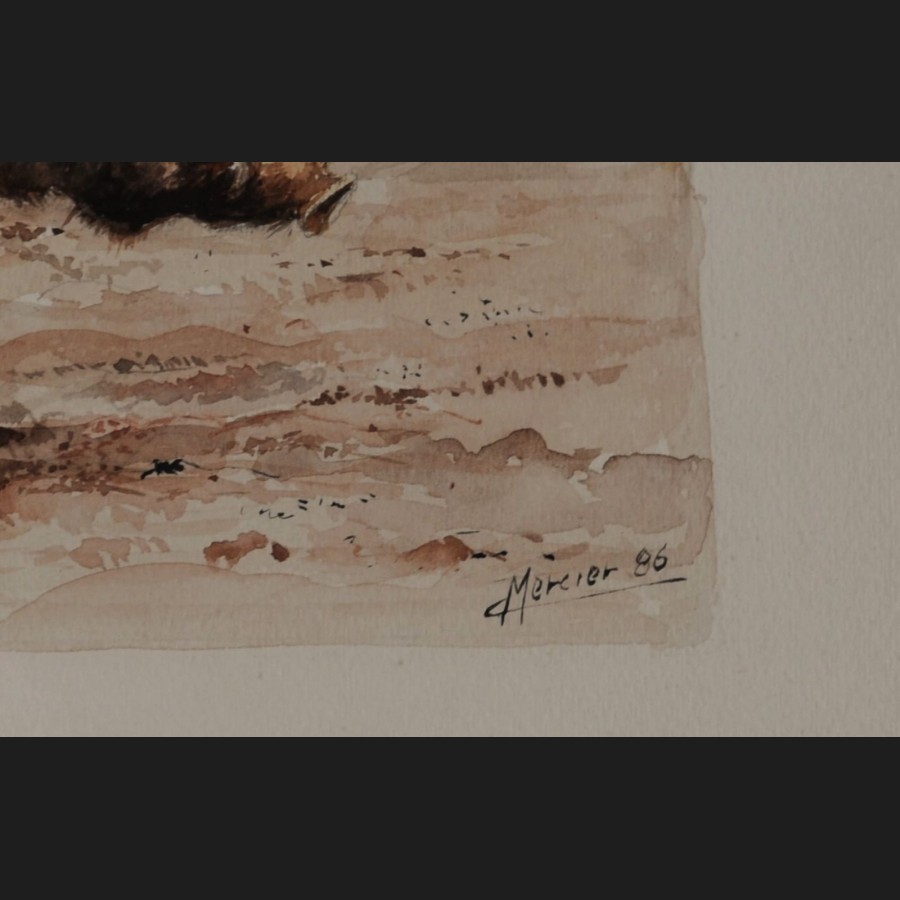 C. MERCIER, Le sanglier, aquarelle