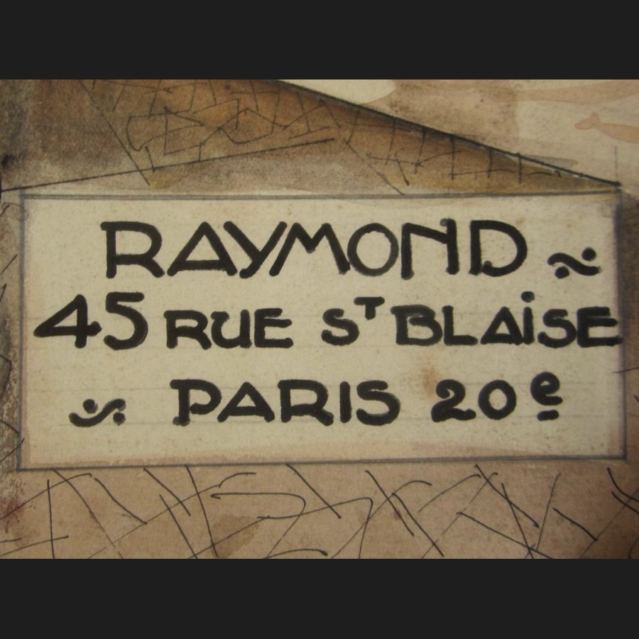 Titré Hall d'embarquement, situé en bas à droite RAYMOND / 45 RUE ST BLAISE / PARIS 20e
