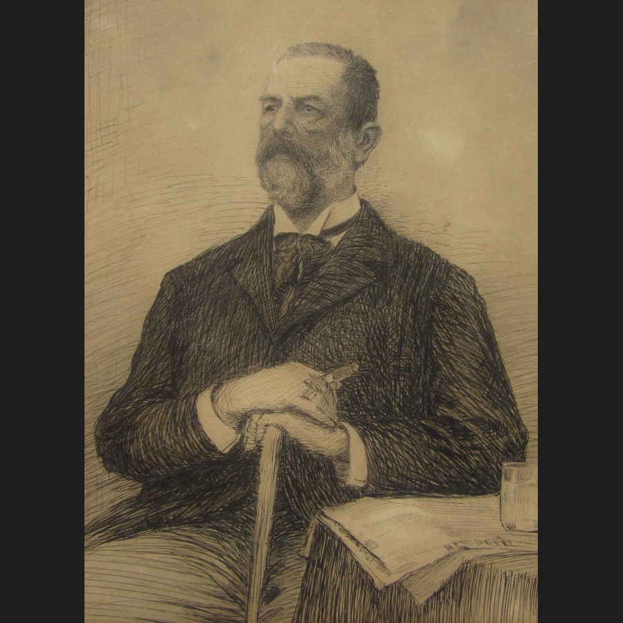 École POLONAISE circa 1920Portrait de Josef Adam GAETZLPlume et encre noire sur papierLégendé au dos en polonais34 x 26 cm