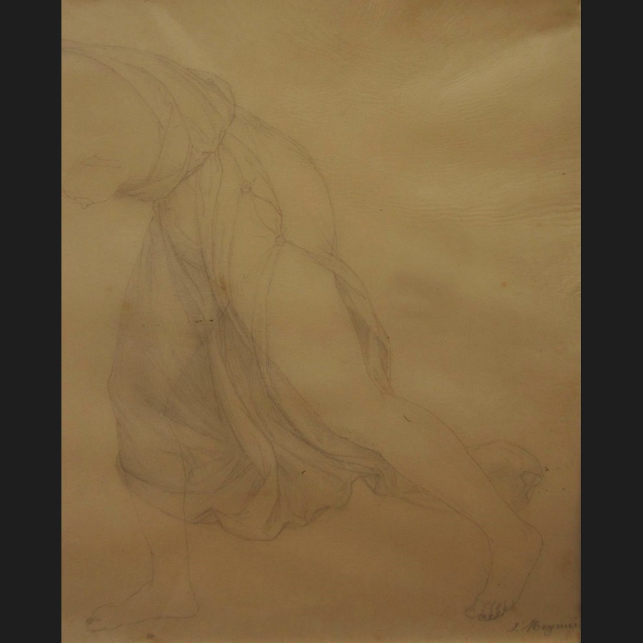 Jules Joseph MEYNIER, Étude de femme drapée à l'antique portant un plat, dessin