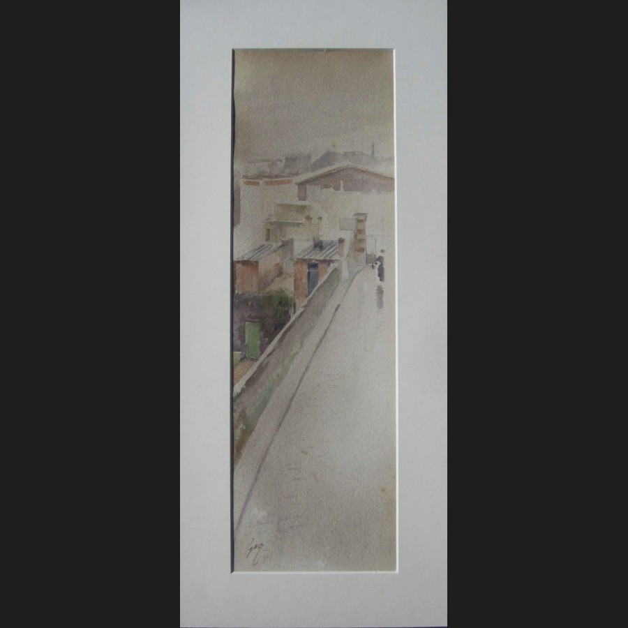 Jean GEOFFROY, dit GÉO, Vue présumée de Belleville, aquarelle