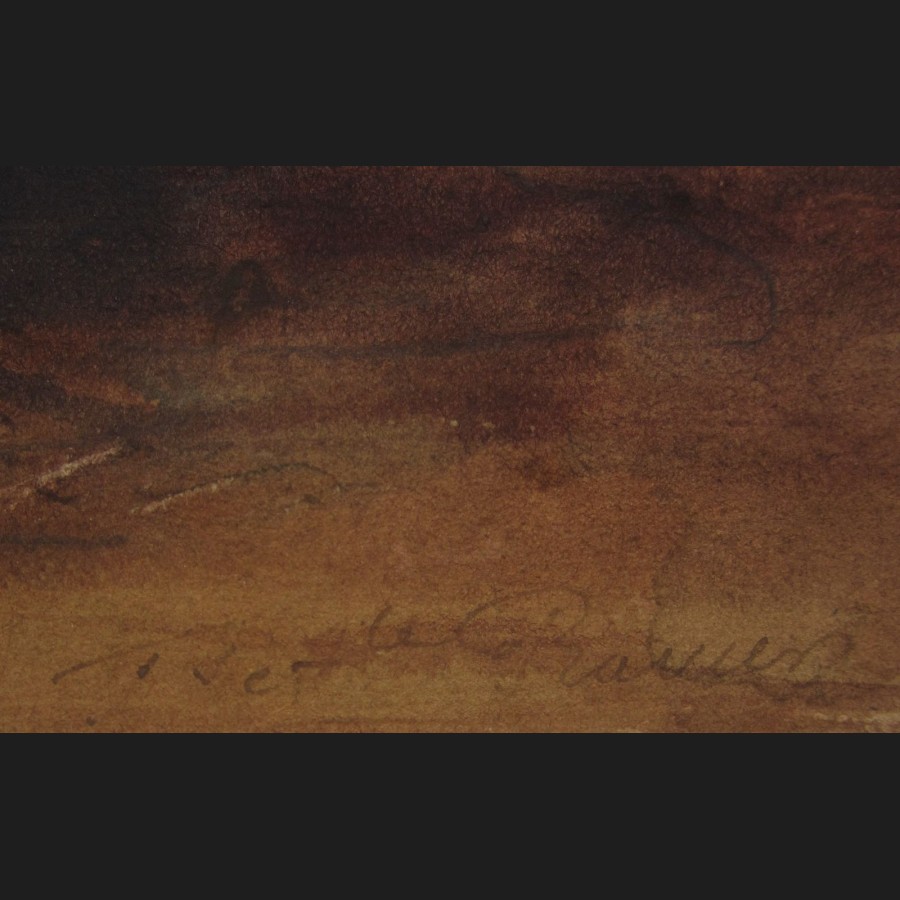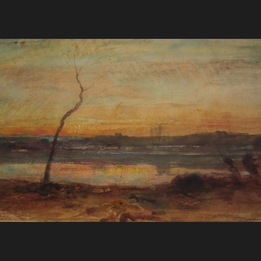 François-Auguste RAVIER, Étang au crépuscule, aquarelle