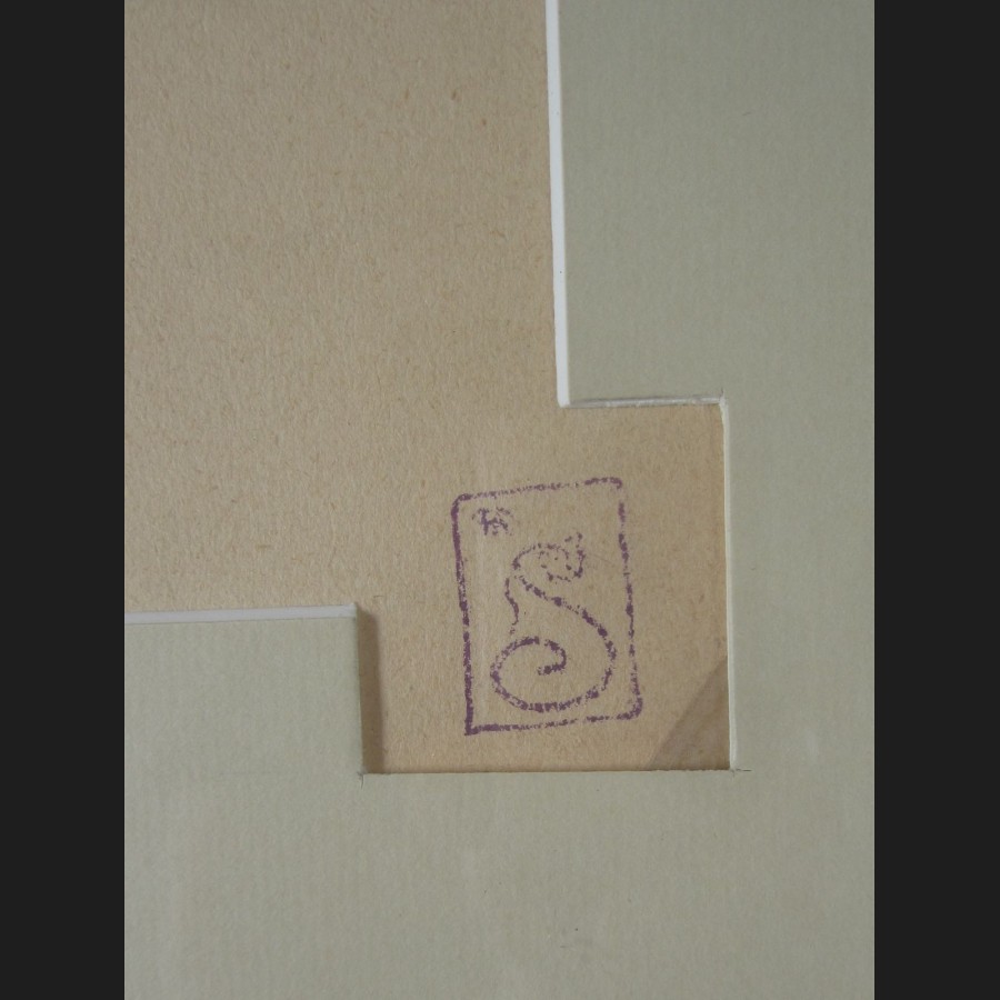 Cachet du monogramme en bas à gauche d'un côté et en bas à droite de l'autre côté