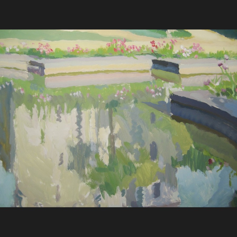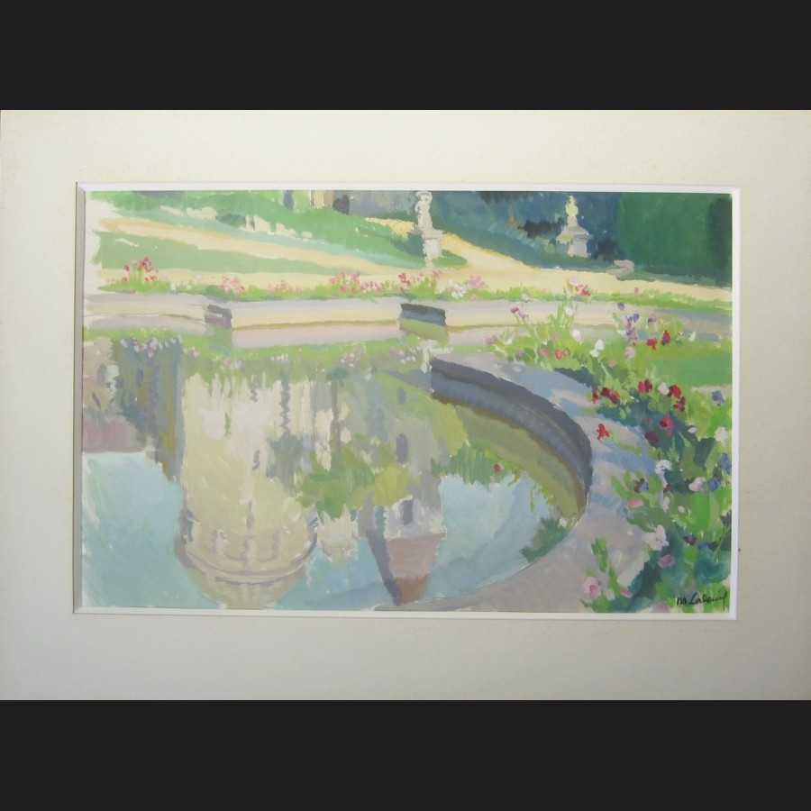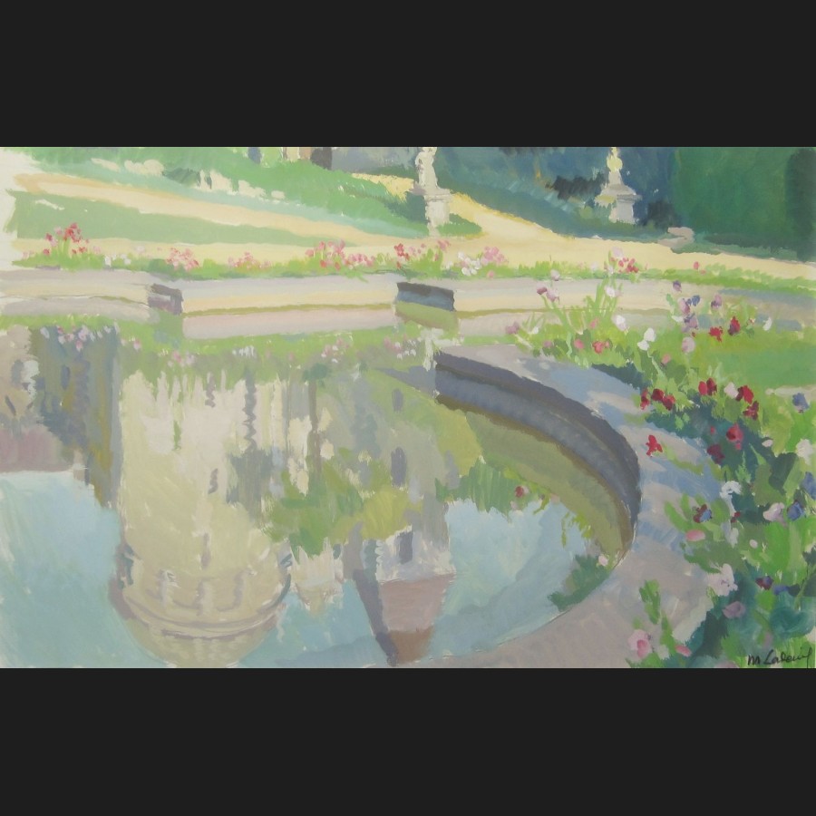 Marcelle LADEUIL, Reflets dans un bassin au Château d'Usson, gouache