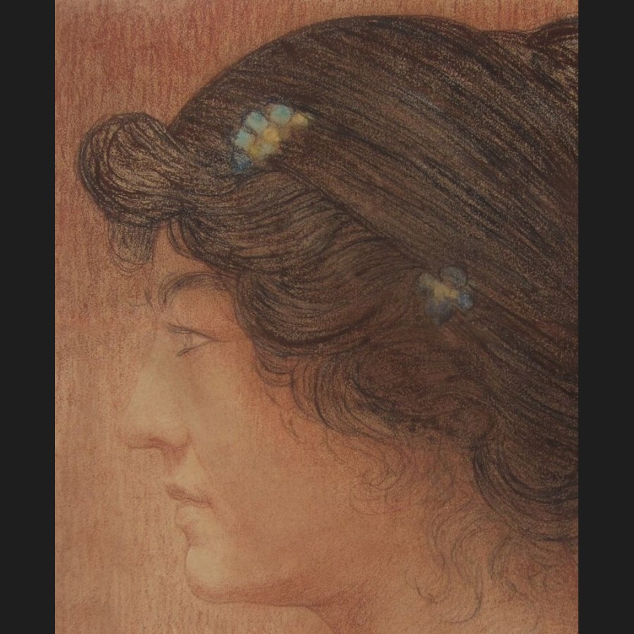 Léon DETROY, Portrait de femme de profil, sanguine et pastel