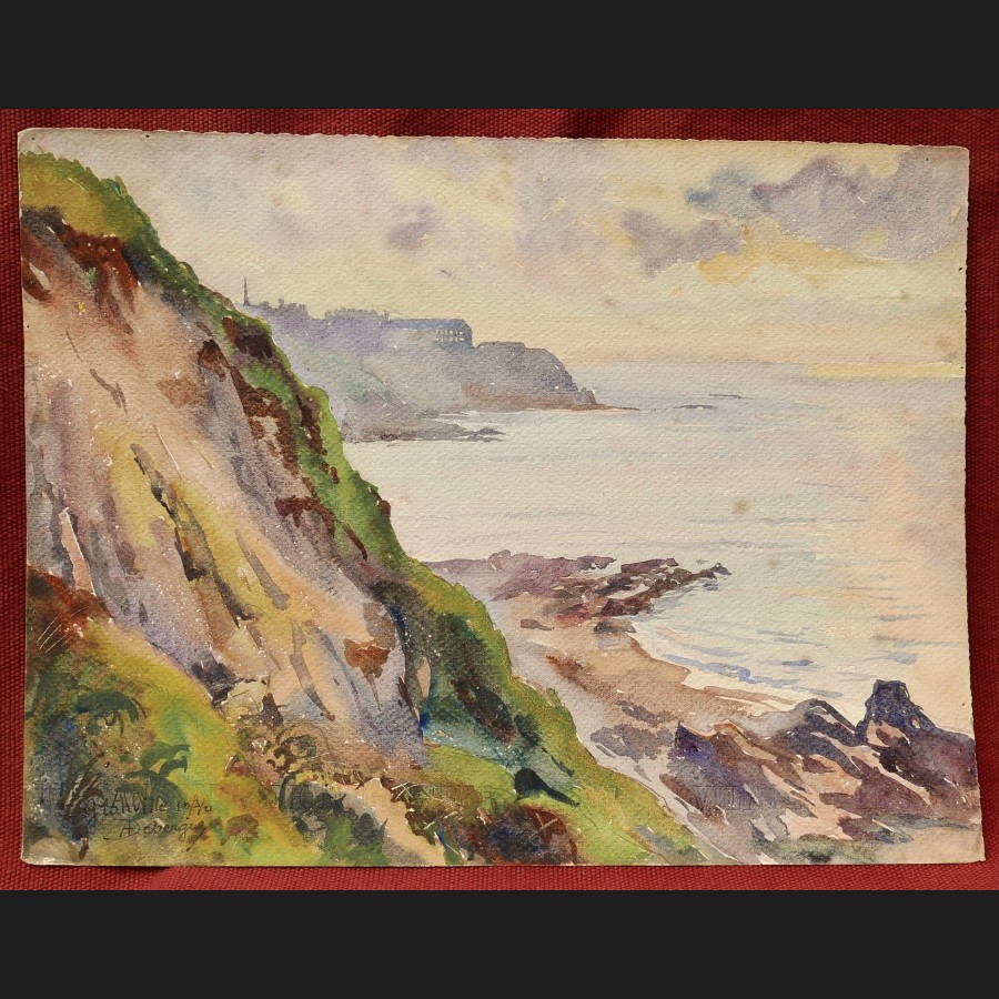 André Alfred DEBERGUE, Vue sur Granville, aquarelle