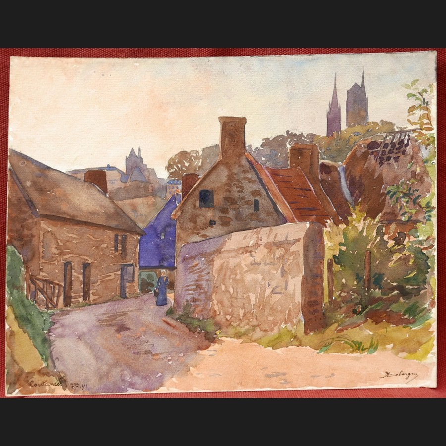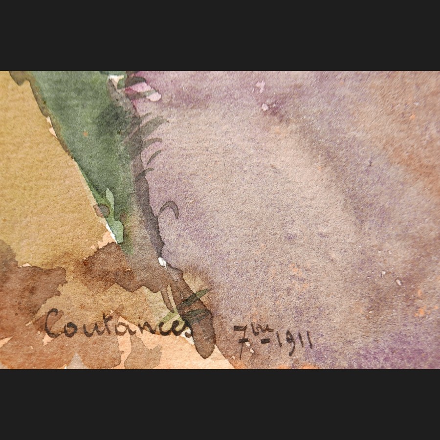 Situé et daté en bas à gauche Coutances 7bre 1911, signé en bas à droite A Debergue