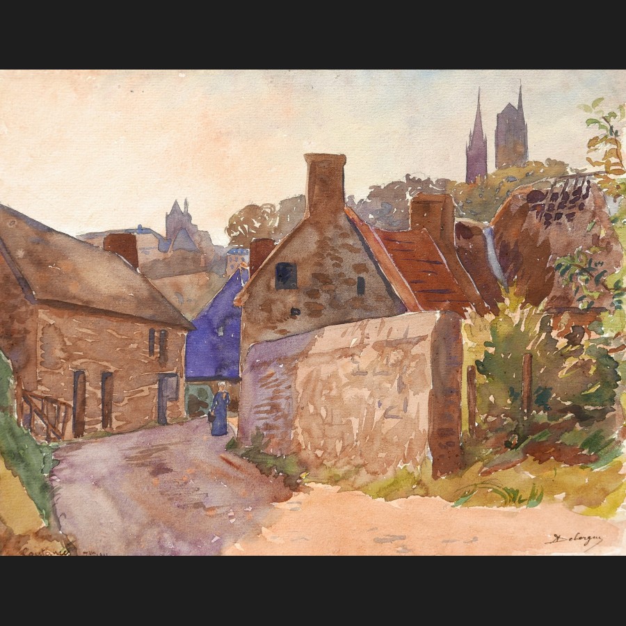André Alfred DEBERGUE, Rue à Coutances, aquarelle