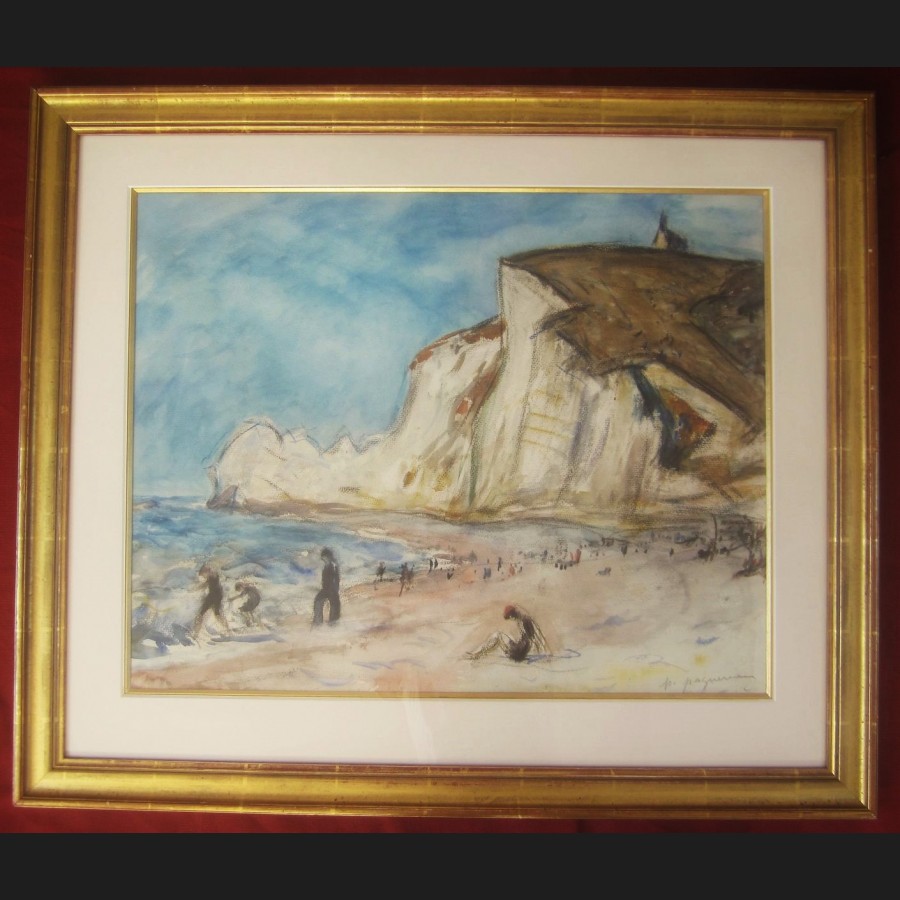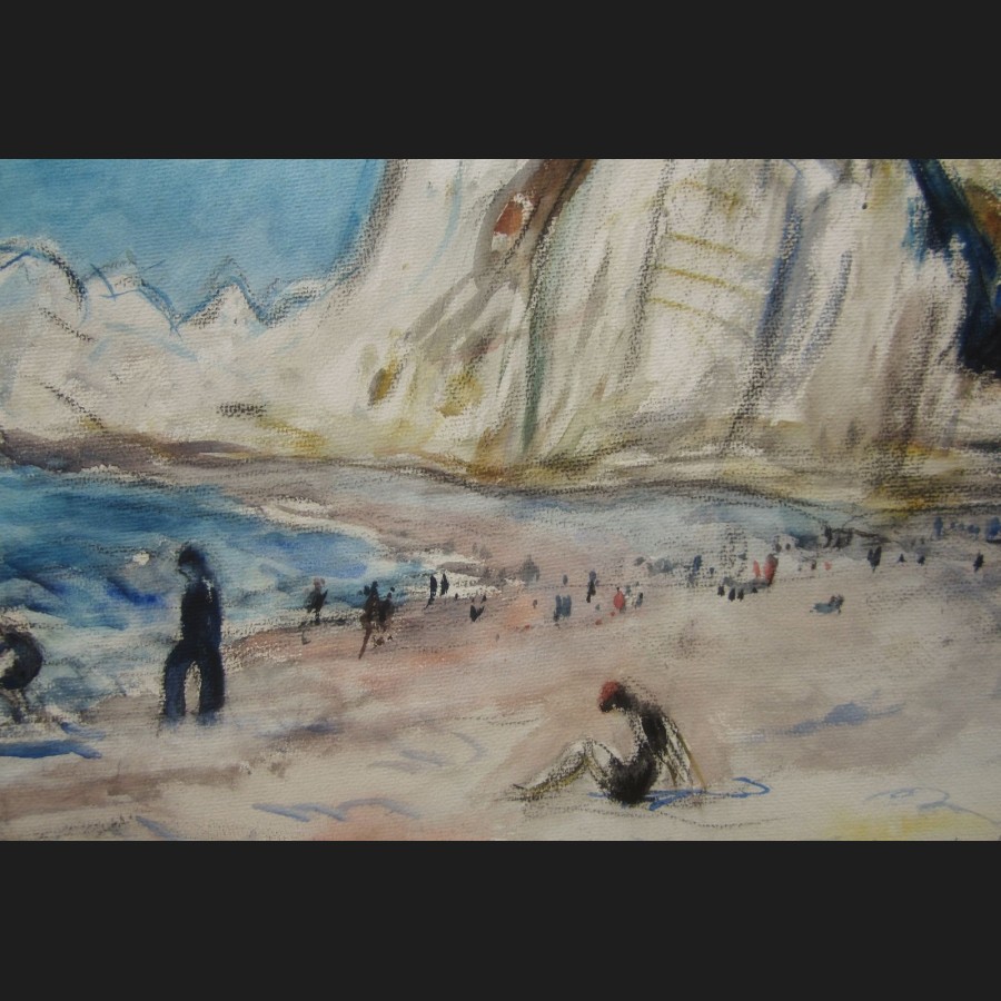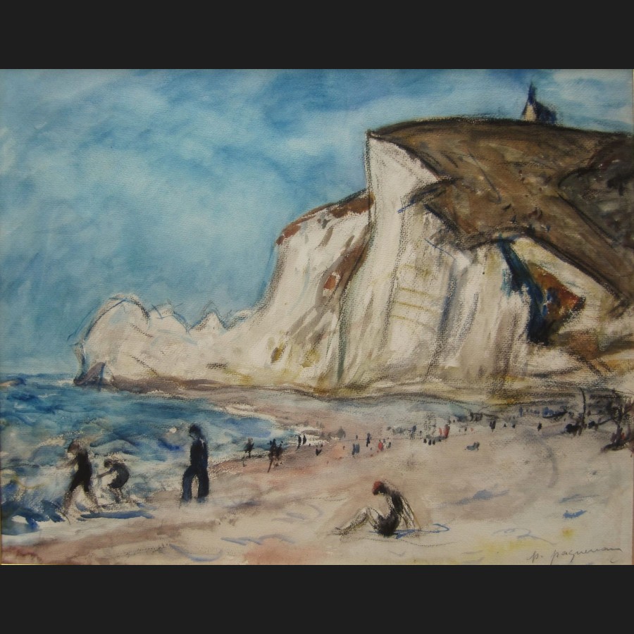 Paul PAQUEREAU (Paris, 1871 – Paris, 1950)Plage animée à ÉtretatAquarelle sur papierSigné en bas à droite p paquereau48 x 62 cm
