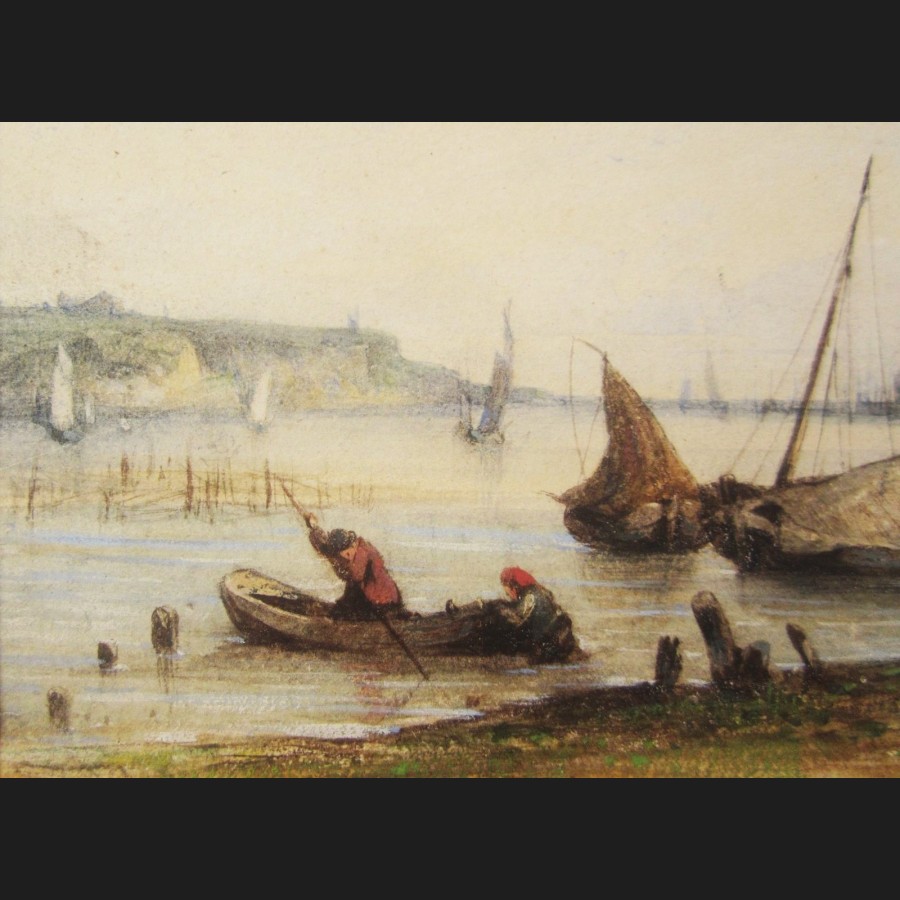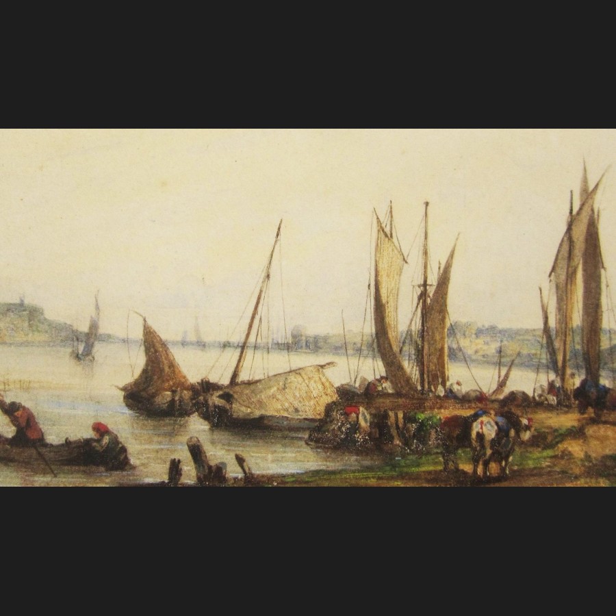 Camille FLERS, Déchargement des bateaux en Normandie, aquarelle et gouache