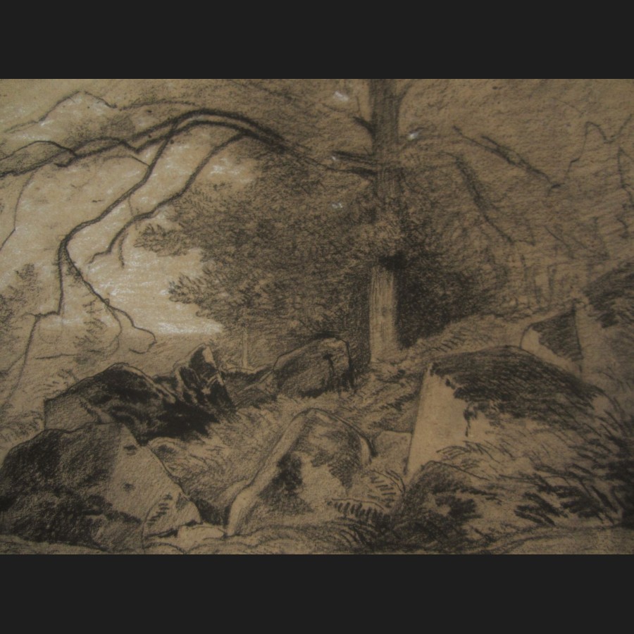 Auguste ALLONGÉ, Étude d'arbre et rochers, dessin