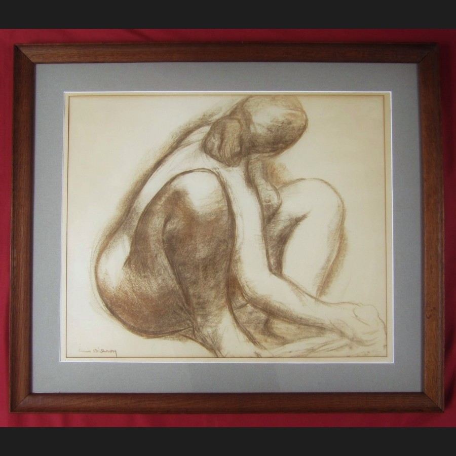 Louis Jules DIDERON (Marseille, 1901 - Paris, 1980)Nu assisCrayon brun sur papierSigné en bas à gauche louis dideron49 x 60 cm