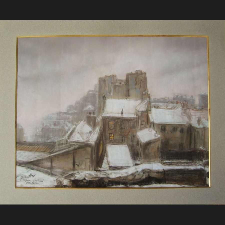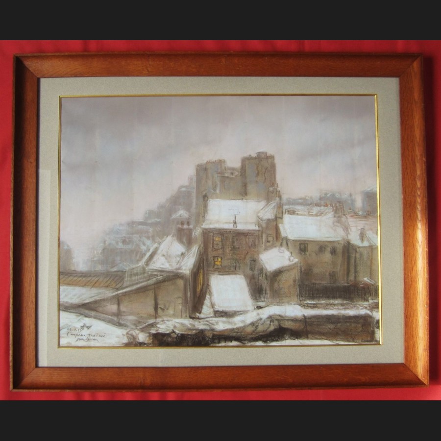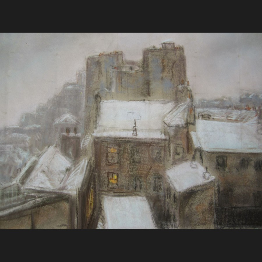 Jules GRANDJOUAN, L'impasse Trainée à Montmartre sous la neige, pastel