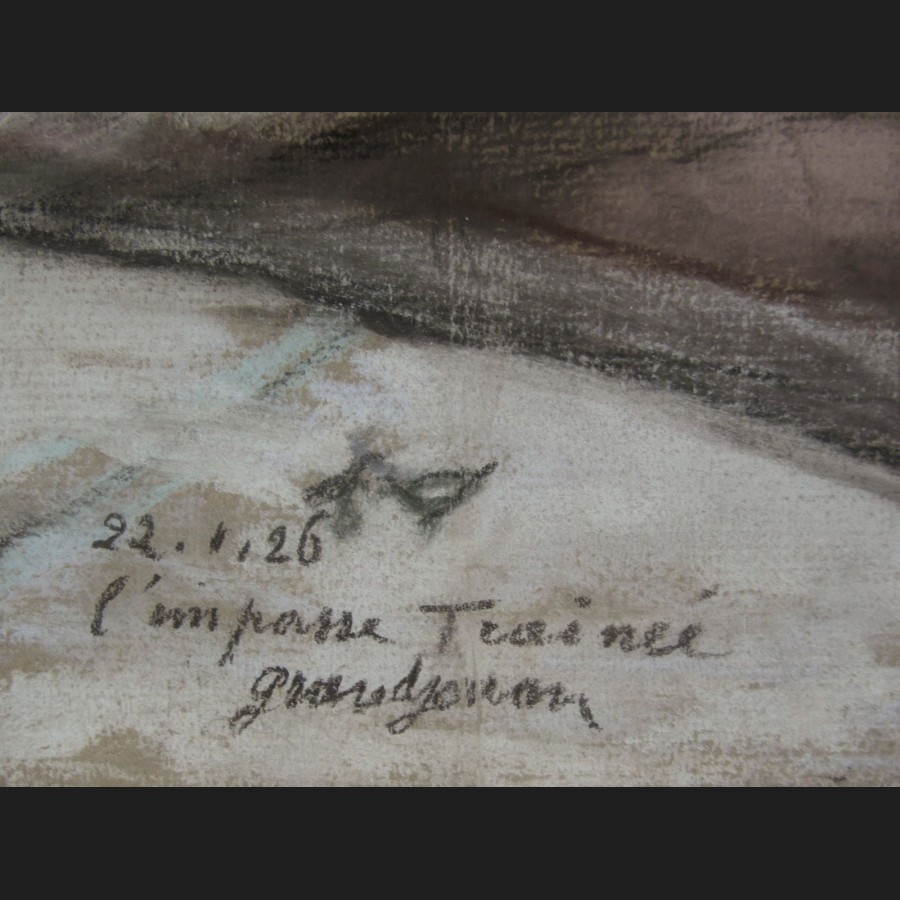 Daté, titré et signé en bas à gauche 22.1.26 / l'impasse Traînée / grandjouan