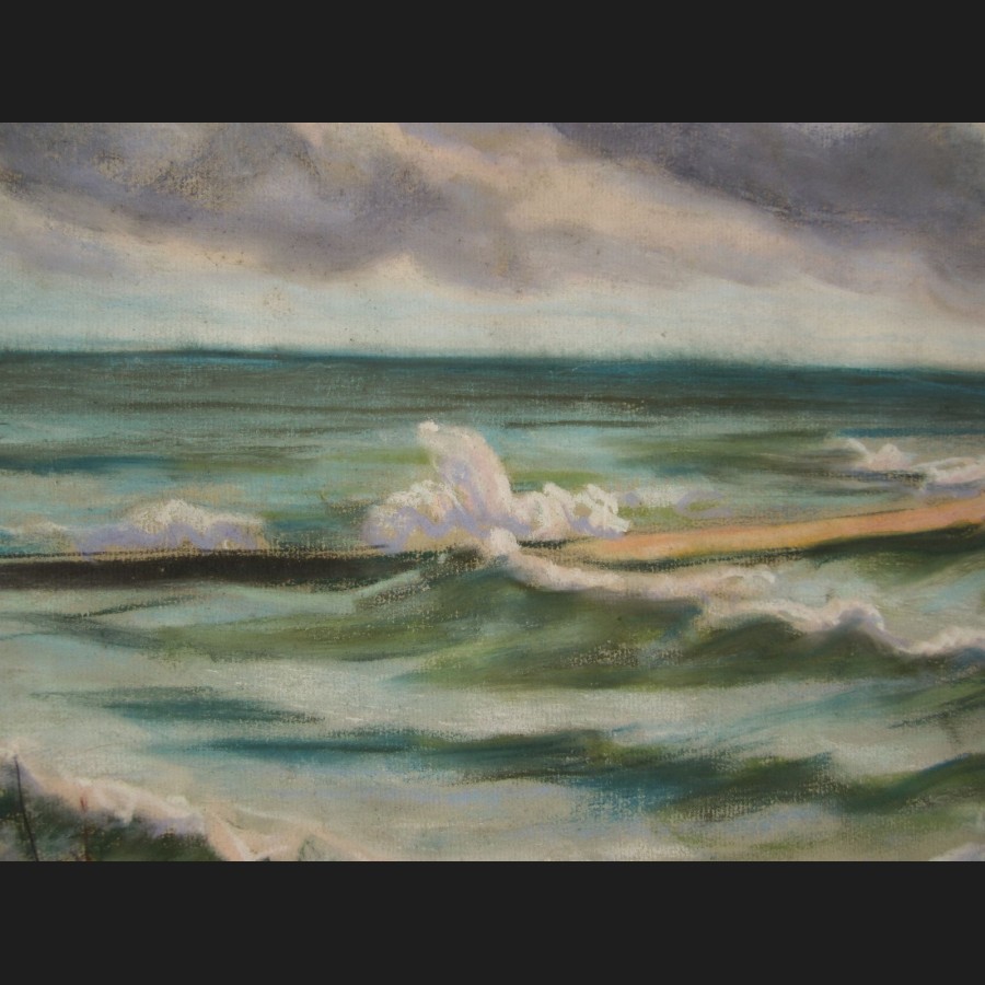 Jules GRANDJOUAN, Gros temps à l'Île de Batz, pastel