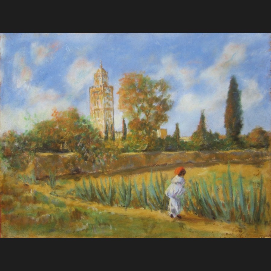 École FRANÇAISE de la fin du XIXème siècle, La Koutoubia à Marrakech, pastel
