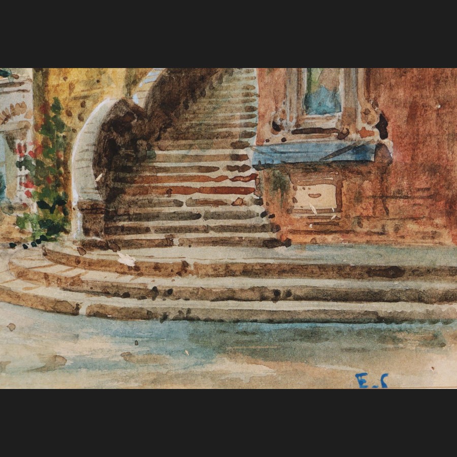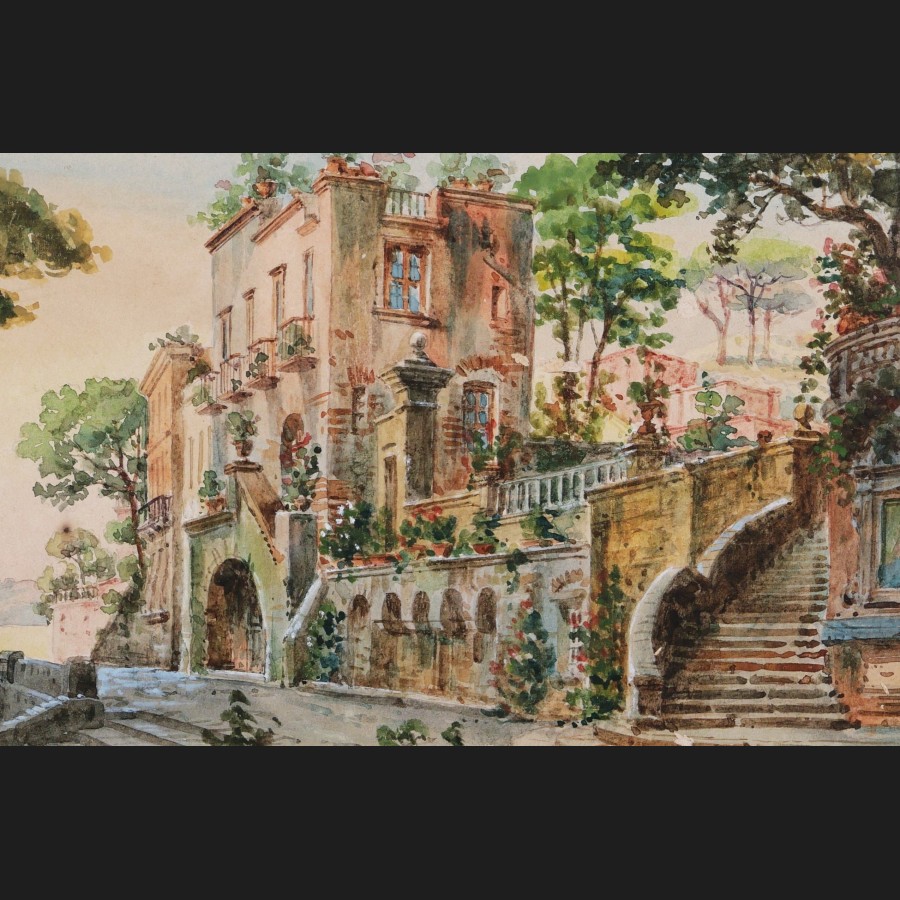 2) Maisons et terrasses arborées en bord de mer (16,7 x 25 cm)