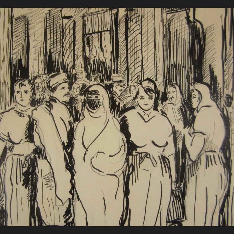 Édouard BENMUSSA-BEN, La Hara à Tunis, dessin