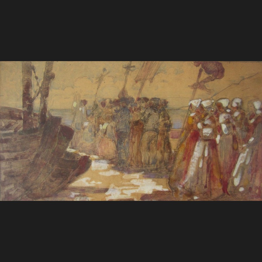 Suzanne DROUET-AZAM, Pardon en Bretagne, aquarelle