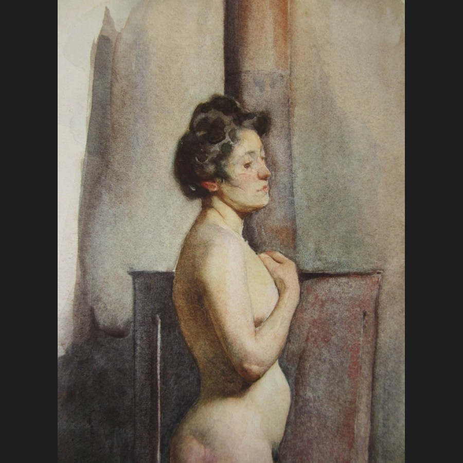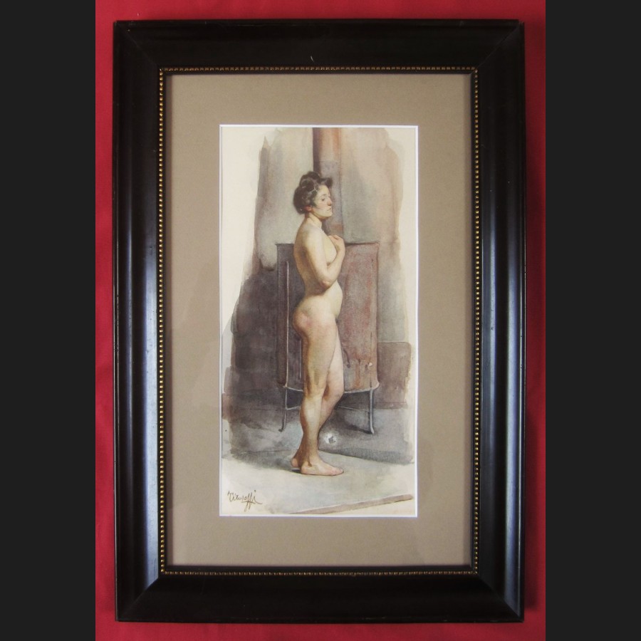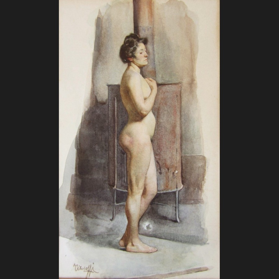 Tito LESSI (Florence, 1858 – Florence, 1917)Femme au poêleAquarelle sur papierSigné en bas à gauche Tito Lessi31,5 x 18,5 cmCadre en bois noirci