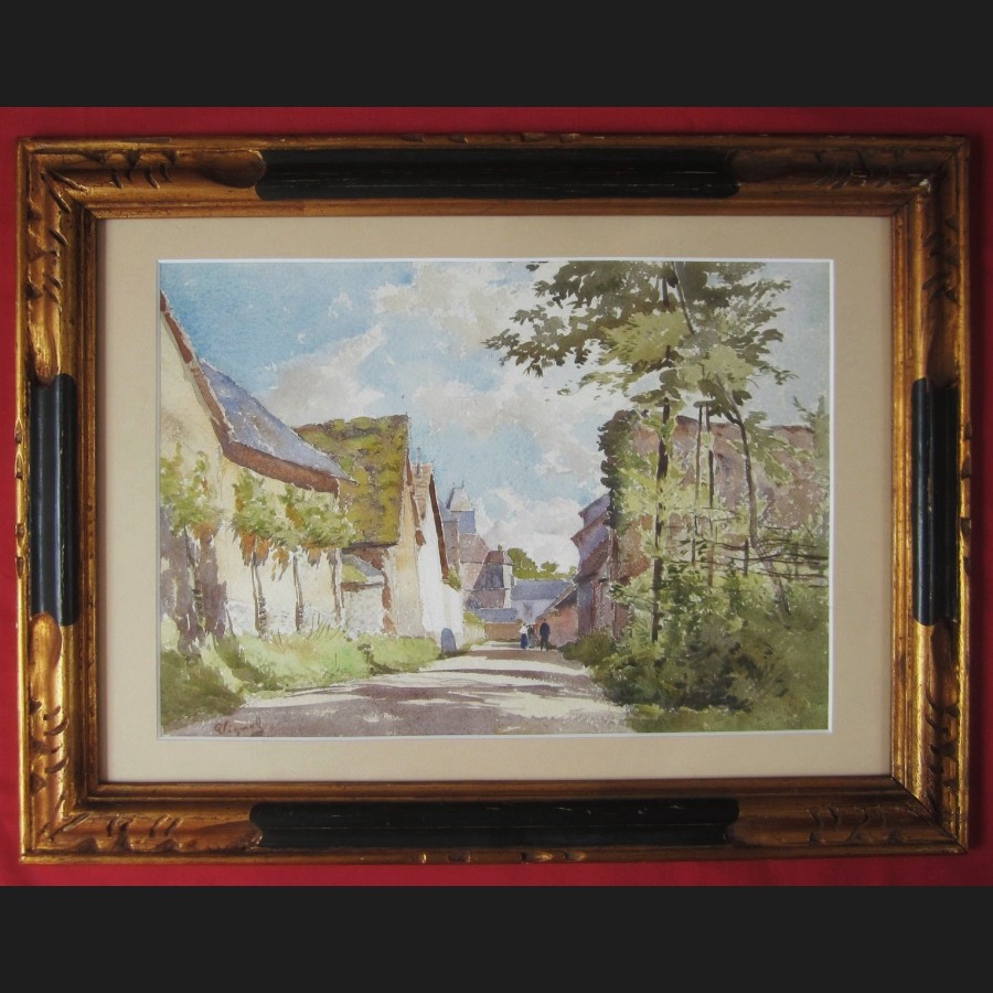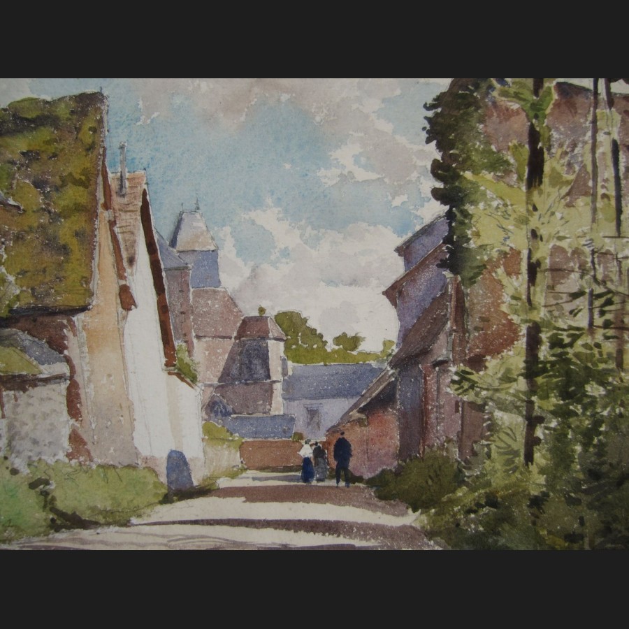 Pierre Victor Louis VIGNAL, Vue animée d'un village, aquarelle