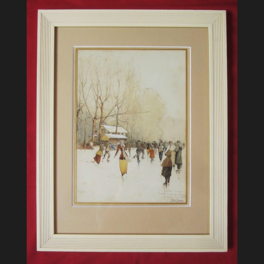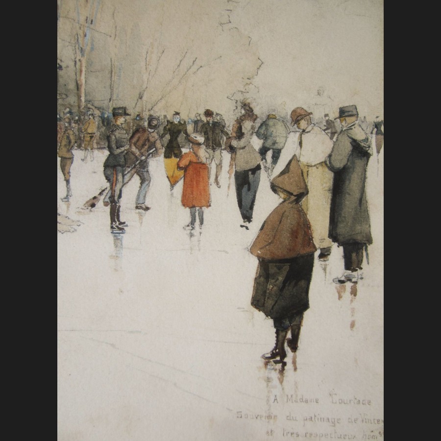 Daté en bas à gauche 1894, dédicacé, situé et signé en bas à droite A Madame Courtade / Souvenir du patinage de Vincennes et très respectueux hommage / F. de Fossa