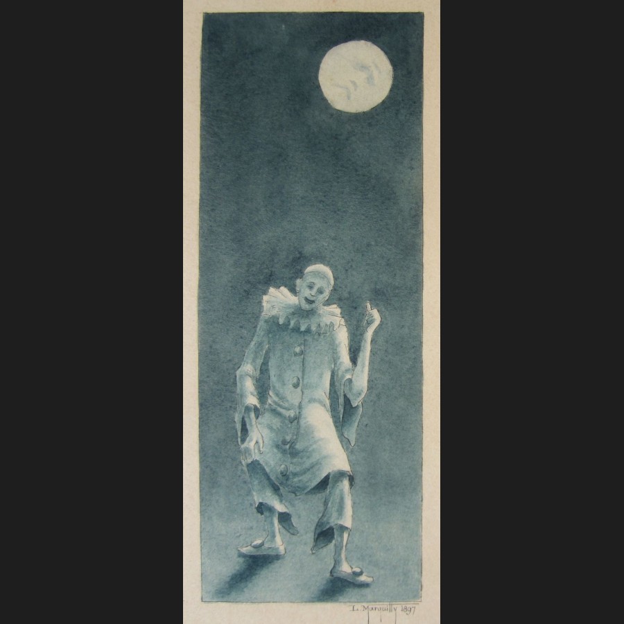 L. MARQUILLY, Pierrot et la Lune, suite de trois dessins