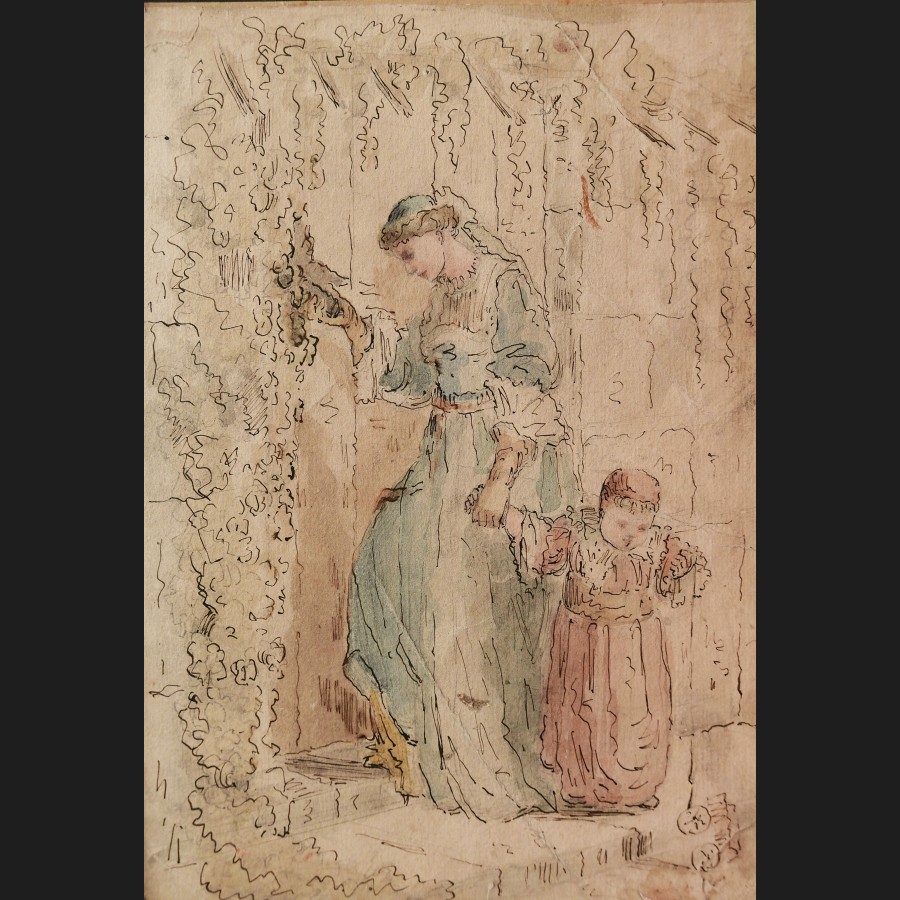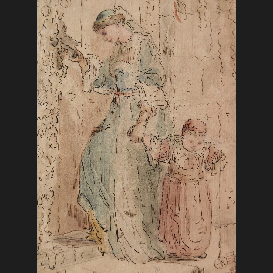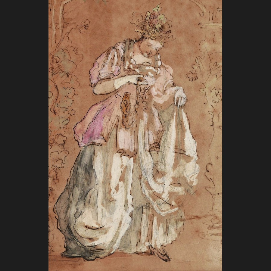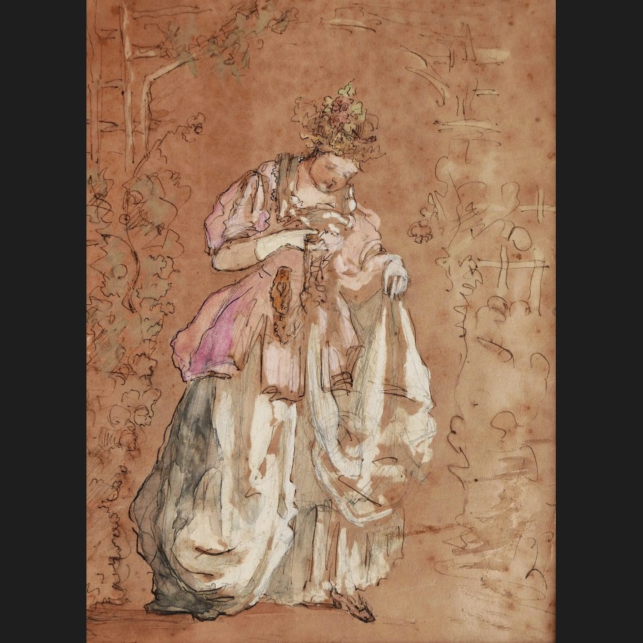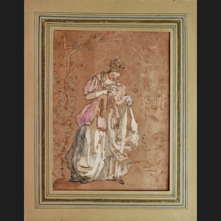 École FRANÇAISE circa 1860, Femmes en costume Renaissance, paire de dessins