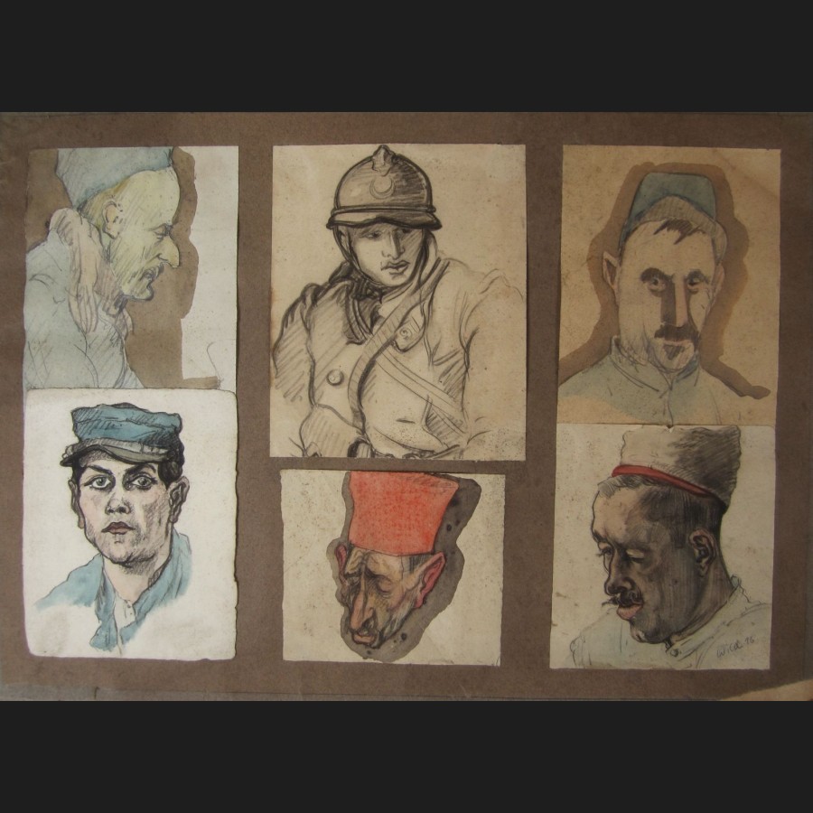 Roger WILD, Portraits de soldats pendant la Grande Guerre, suite de six dessins