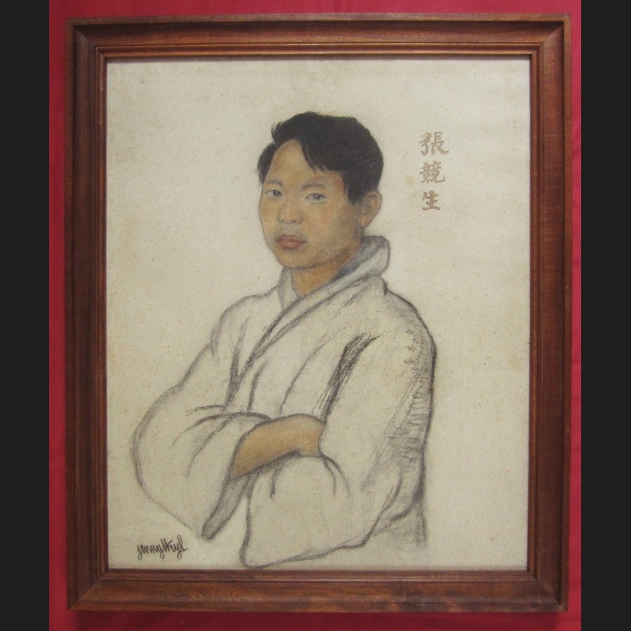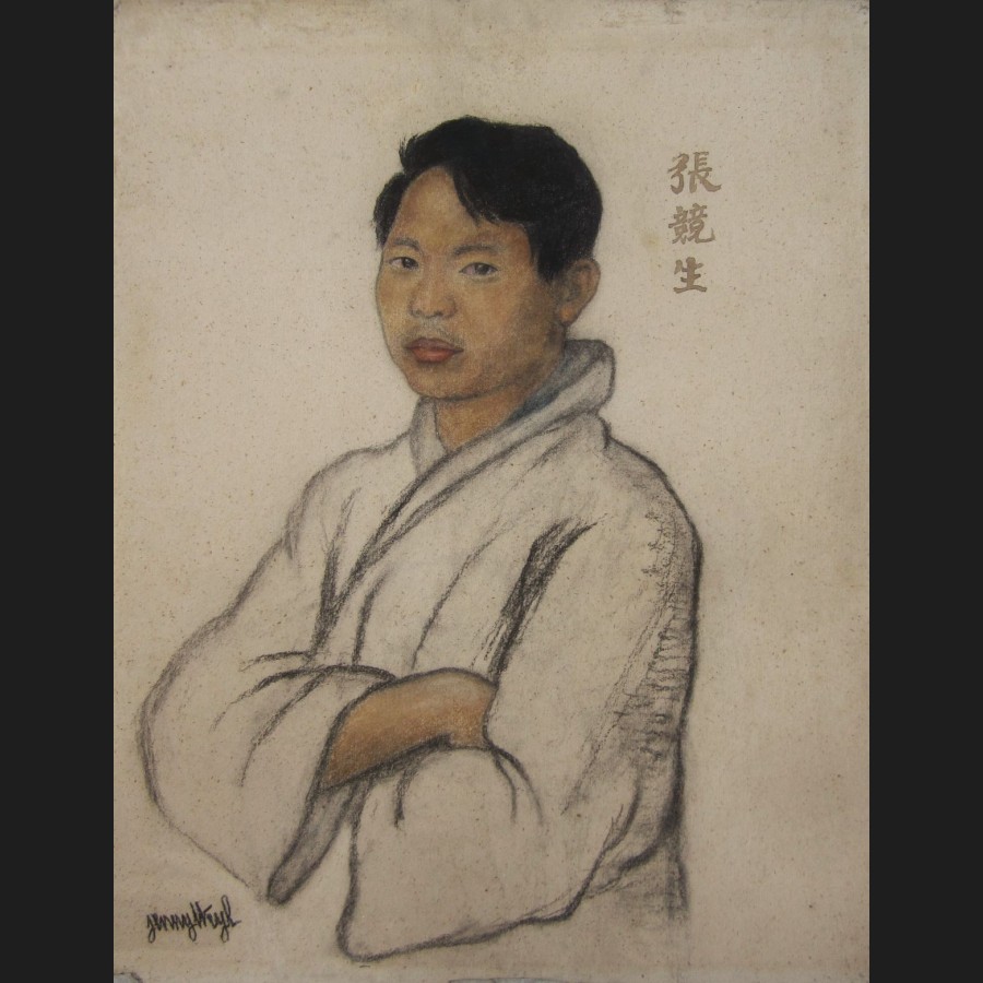 Signé en bas à gauche jenny Weyl, titré et contresigné au dos du carton de montage Portrait de Mr Tien Sin Thung / jenny Weyl