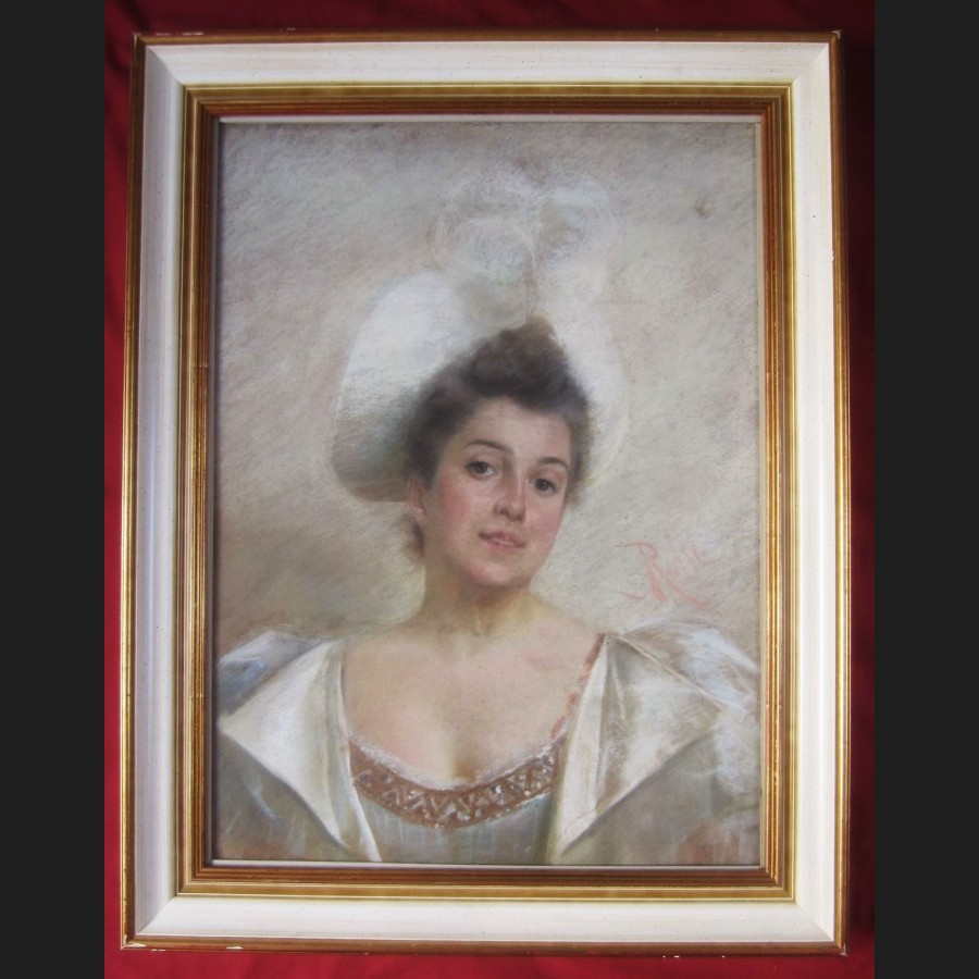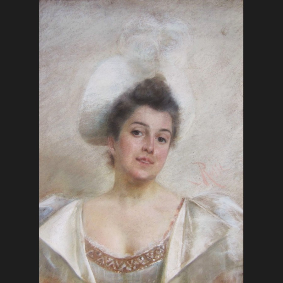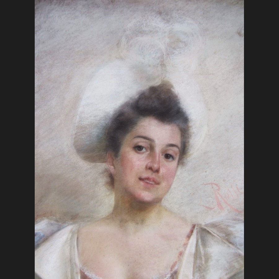 Lucius ROSSI (1823-1913)Portrait de femme en costumePastelSigné au milieu à droite L Rossi72 x 53 cmCadre en bois doré et peint en blanc