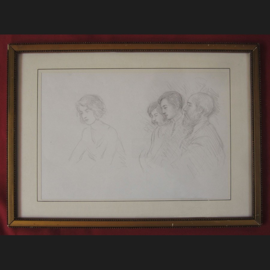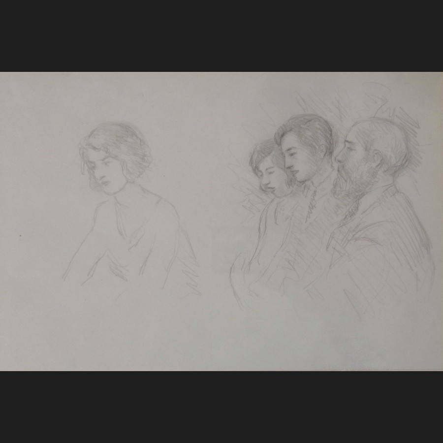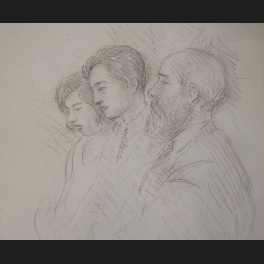 Julie MANET, Portrait d'Ernest Rouart avec ses enfants Clément et Victoria, dessin