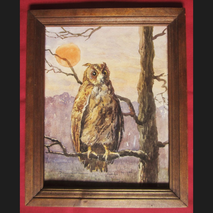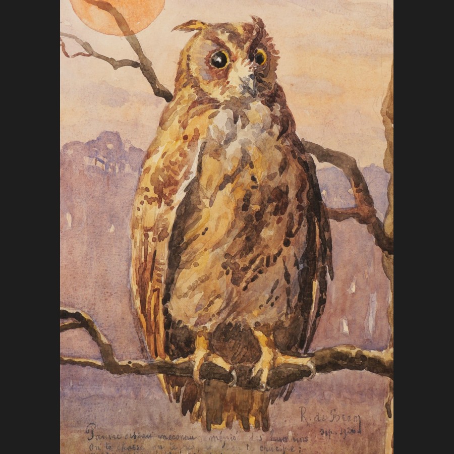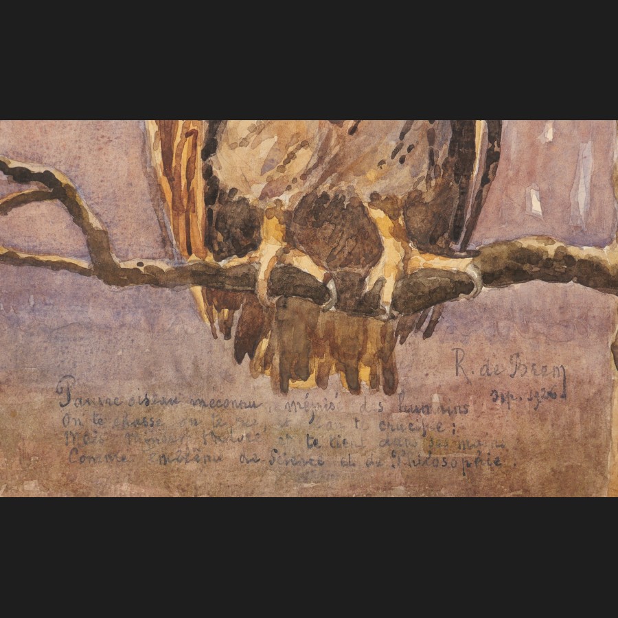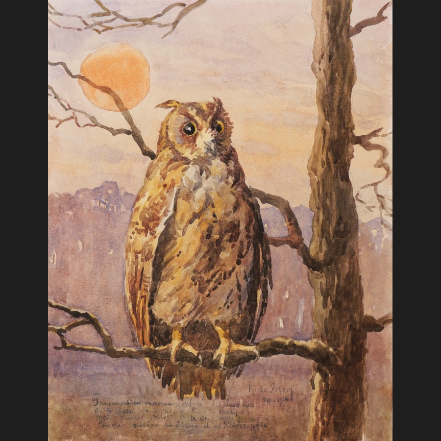 Roger MARCETTEAU de BREM, La chouette, aquarelle
