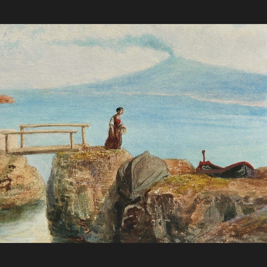 École FRANÇAISE circa 1840, Paysage animé en Calabre avec vue sur l'Etna, aquarelle