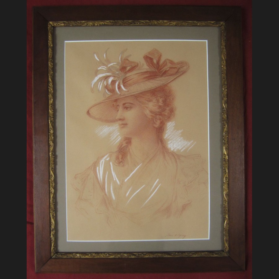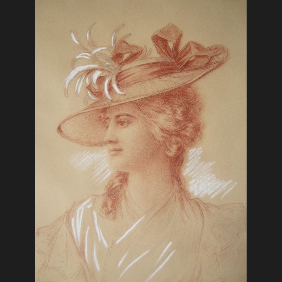 Marie d'ÉPINAY, Portrait de femme au chapeau, dessin