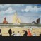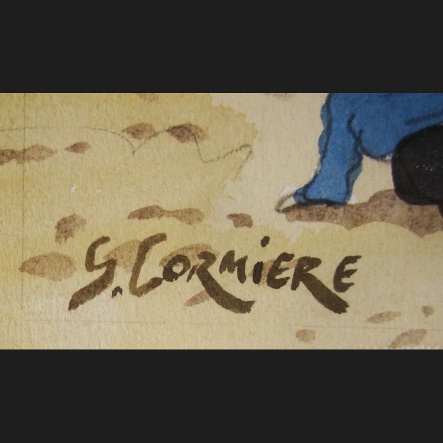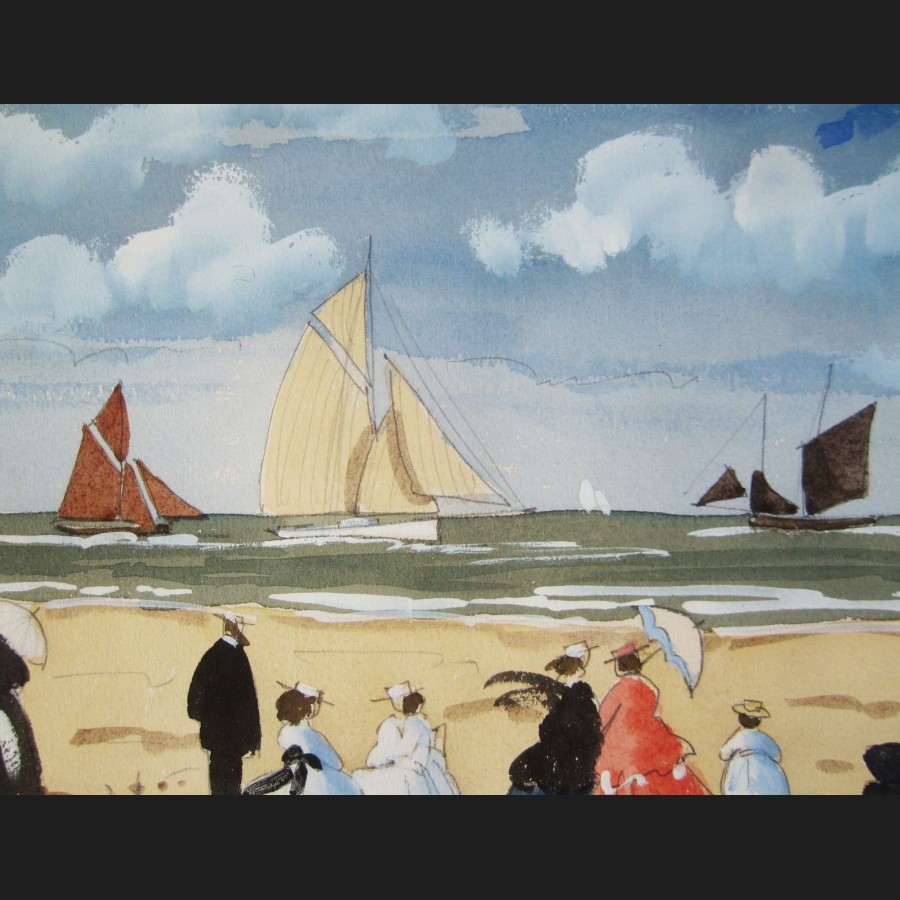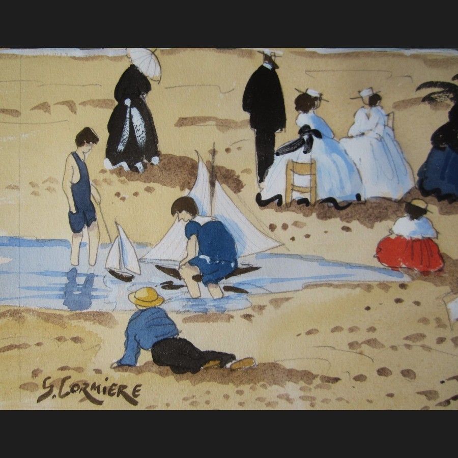 Gaston CORMIÈRE, Plage animée en Normandie, aquarelle