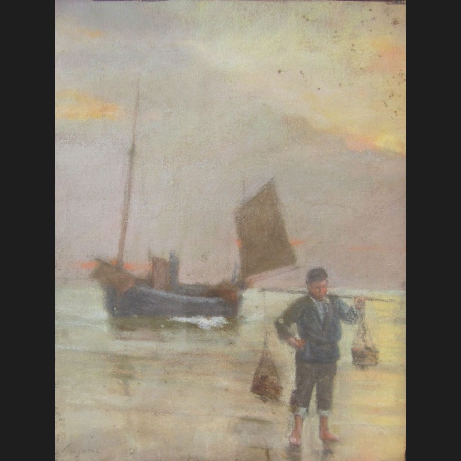 Jean Aujame, Paire de paysages animés sur la grève vers Berck, pastel