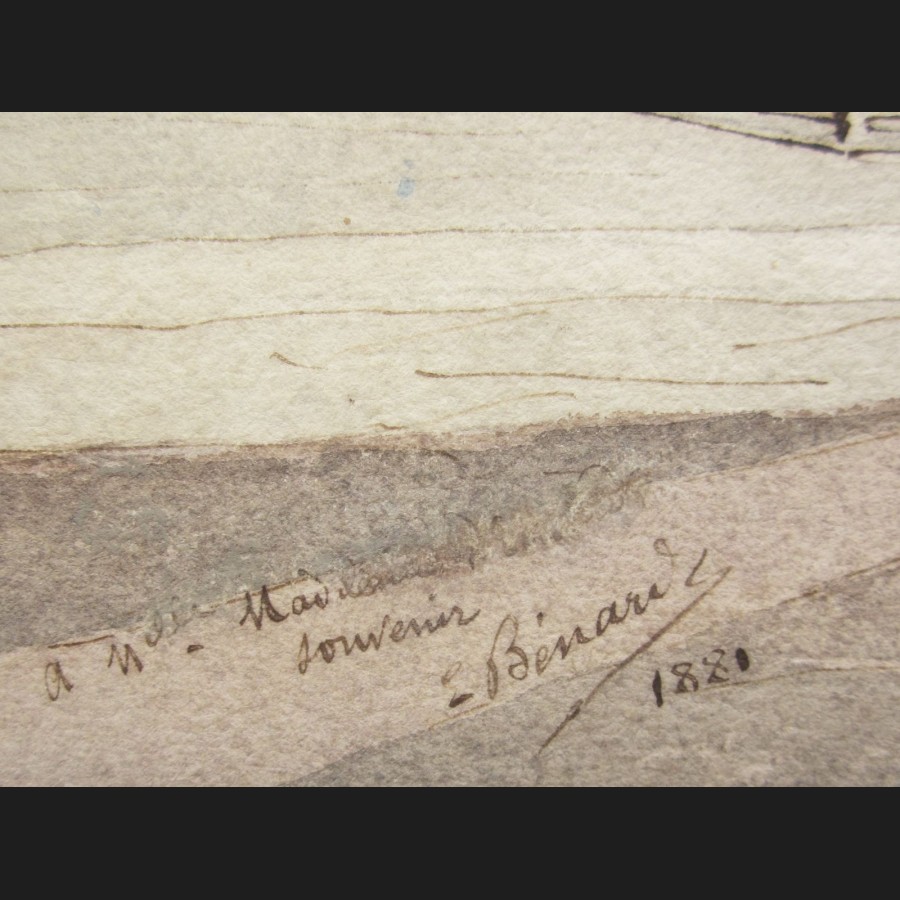 Dédicacé, signé et daté en bas à gauche à Mlle Madeleine … / souvenir / E Bénard / 1881