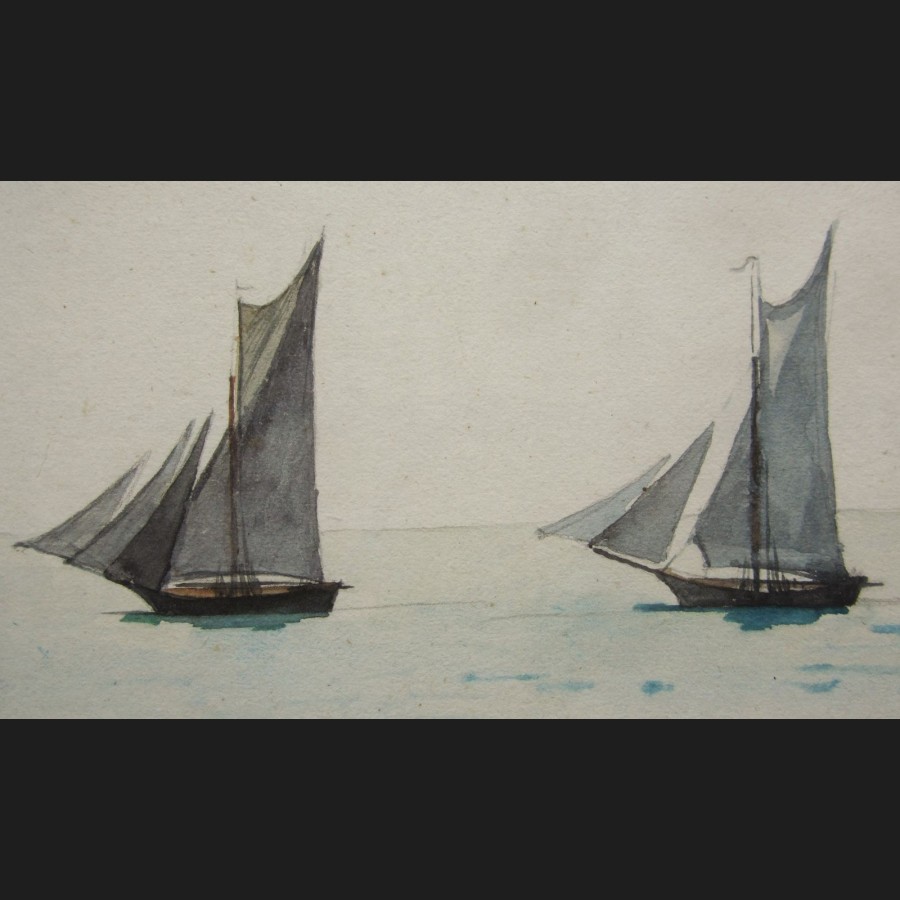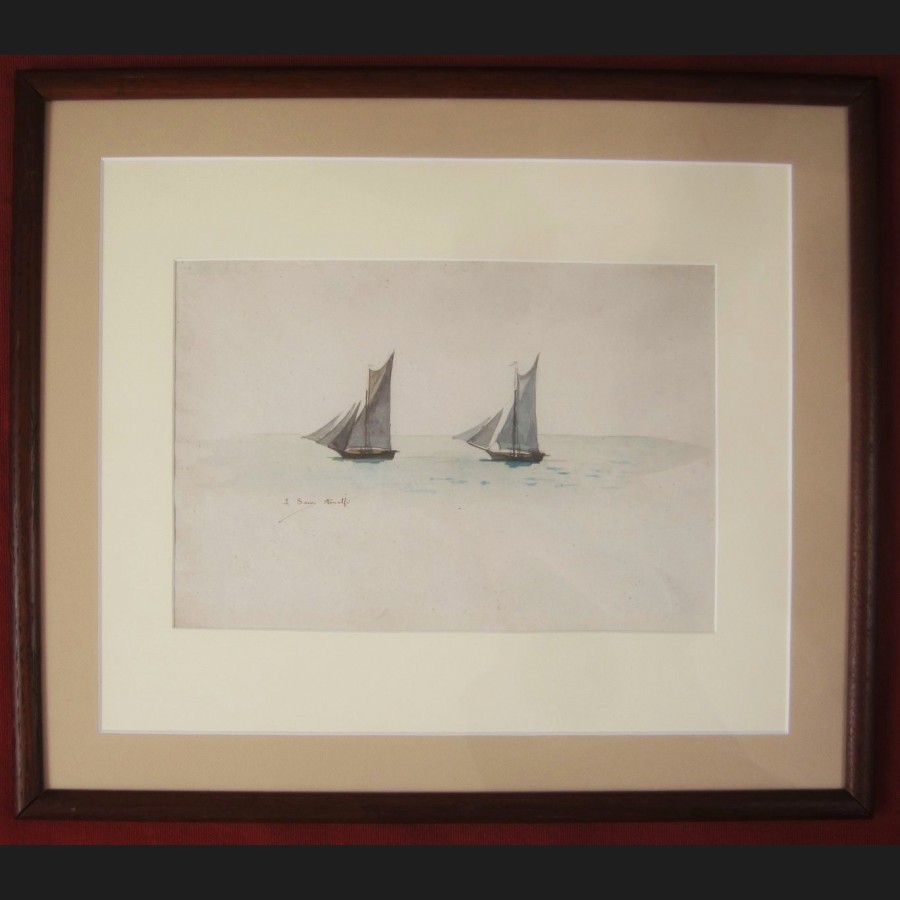 Édouard Alexandre SAIN, Deux bateaux à Amalfi, aquarelle