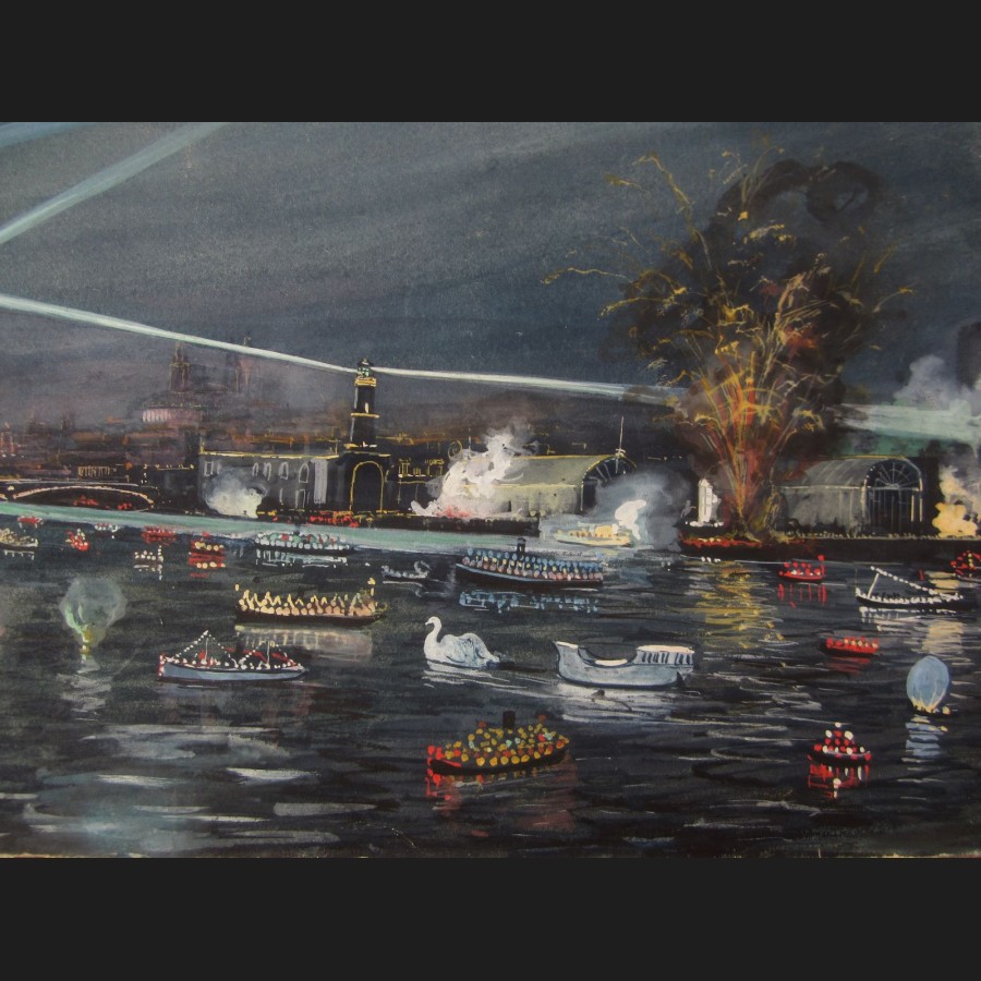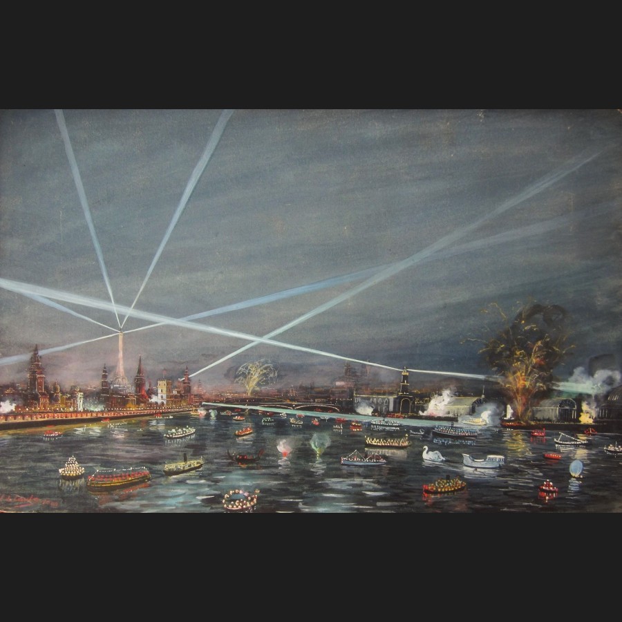 Antonio de CAULA y CONCEJO, Illuminations sur la Seine pour l'Exposition Universelle, gouache