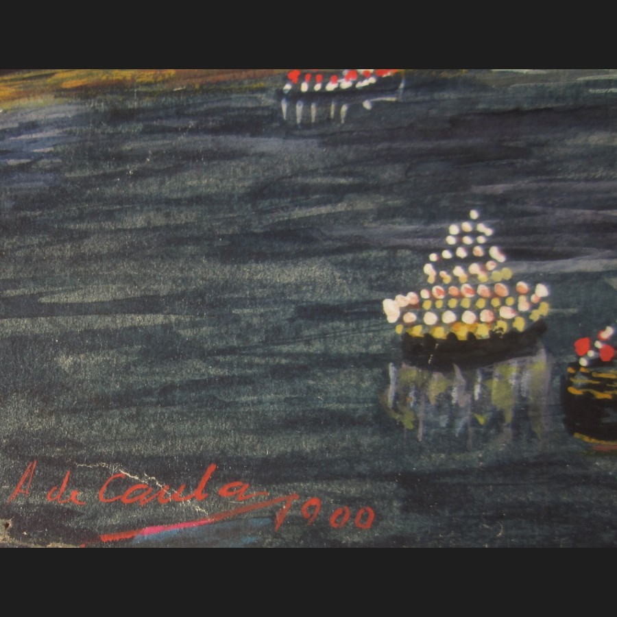 Signé en bas à gauche A. de Caula 1900, inscrit au dos La Seine la nuit du 18 août 1900