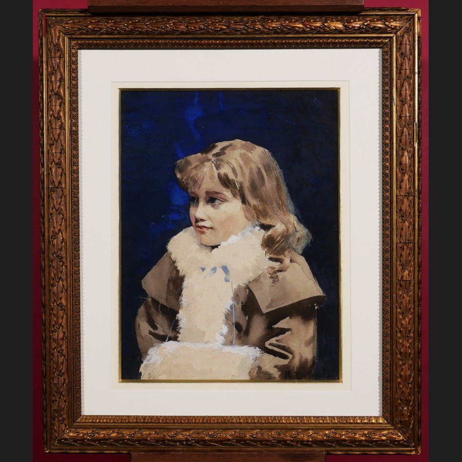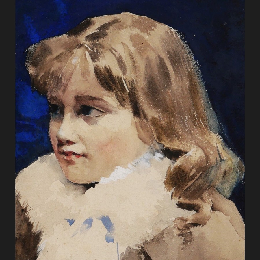 Henry-Julien DETOUCHE, Petite fille au manchon, aquarelle