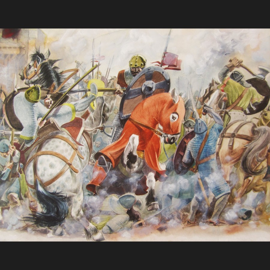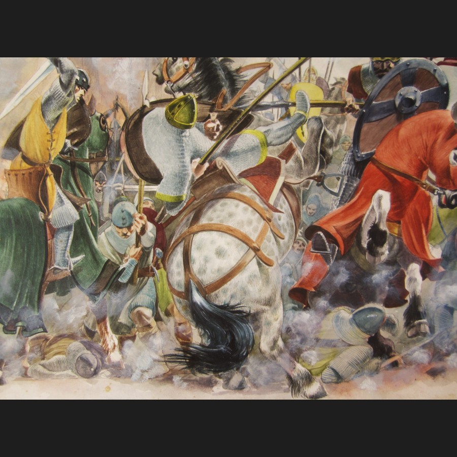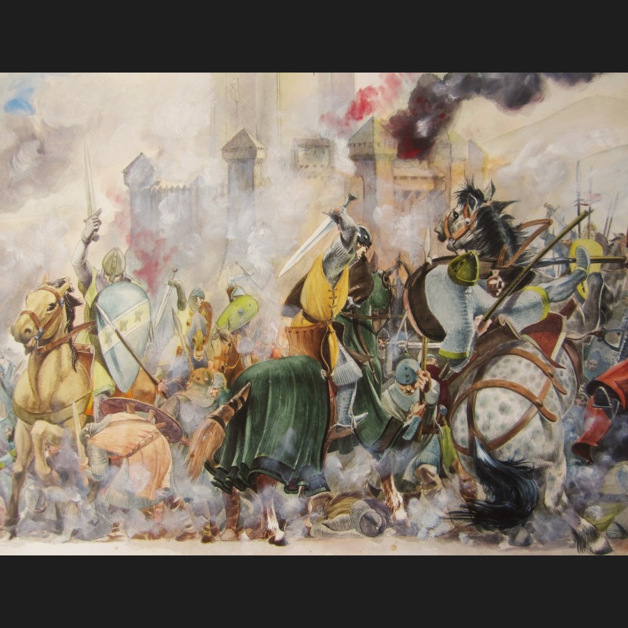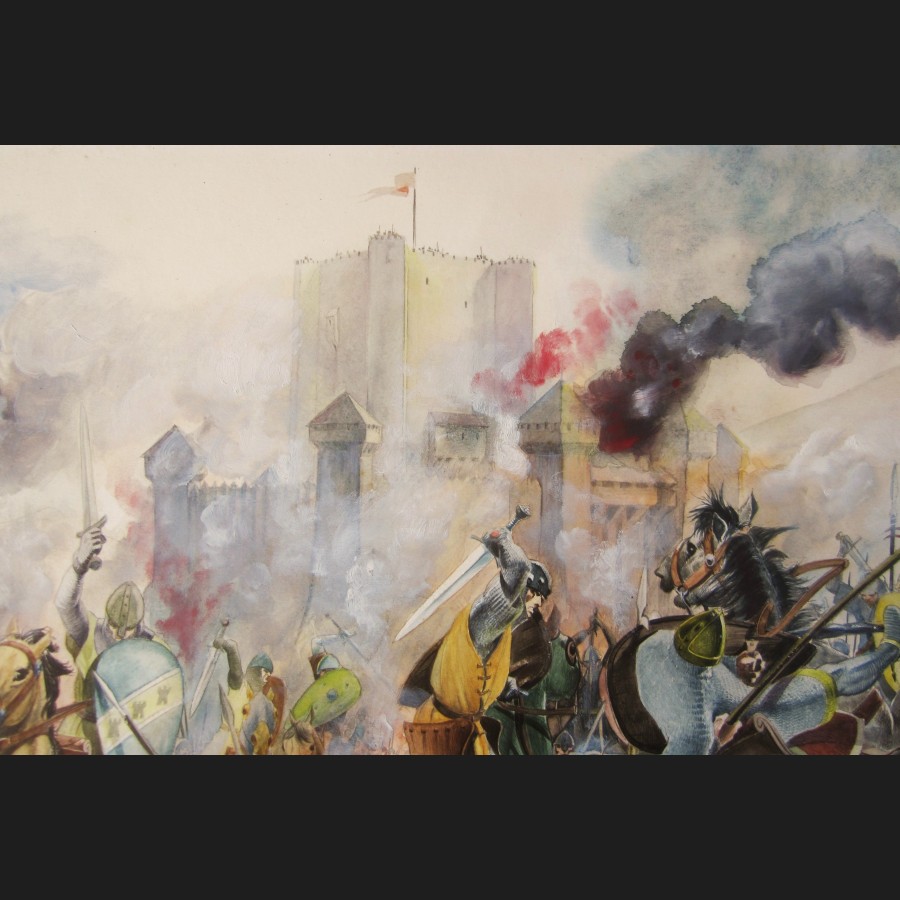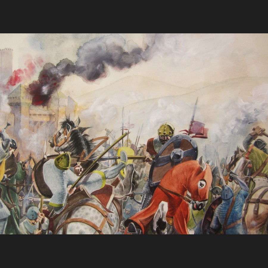 École FRANÇAISE de la seconde moitié du XXème siècle, Scène de bataille au Moyen-Âge, aquarelle