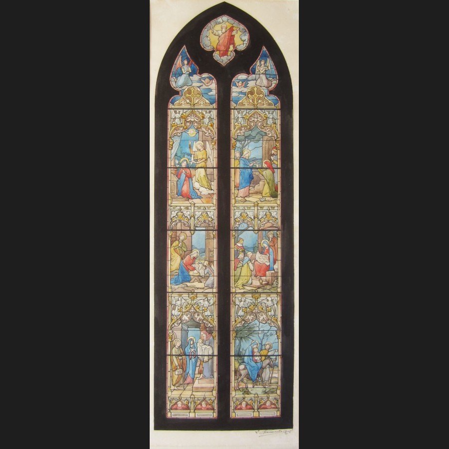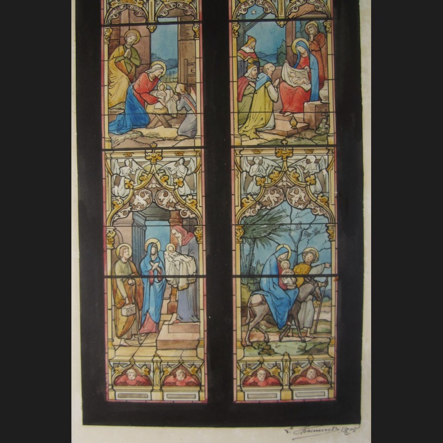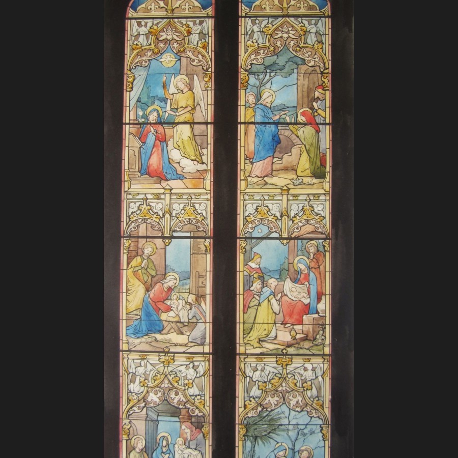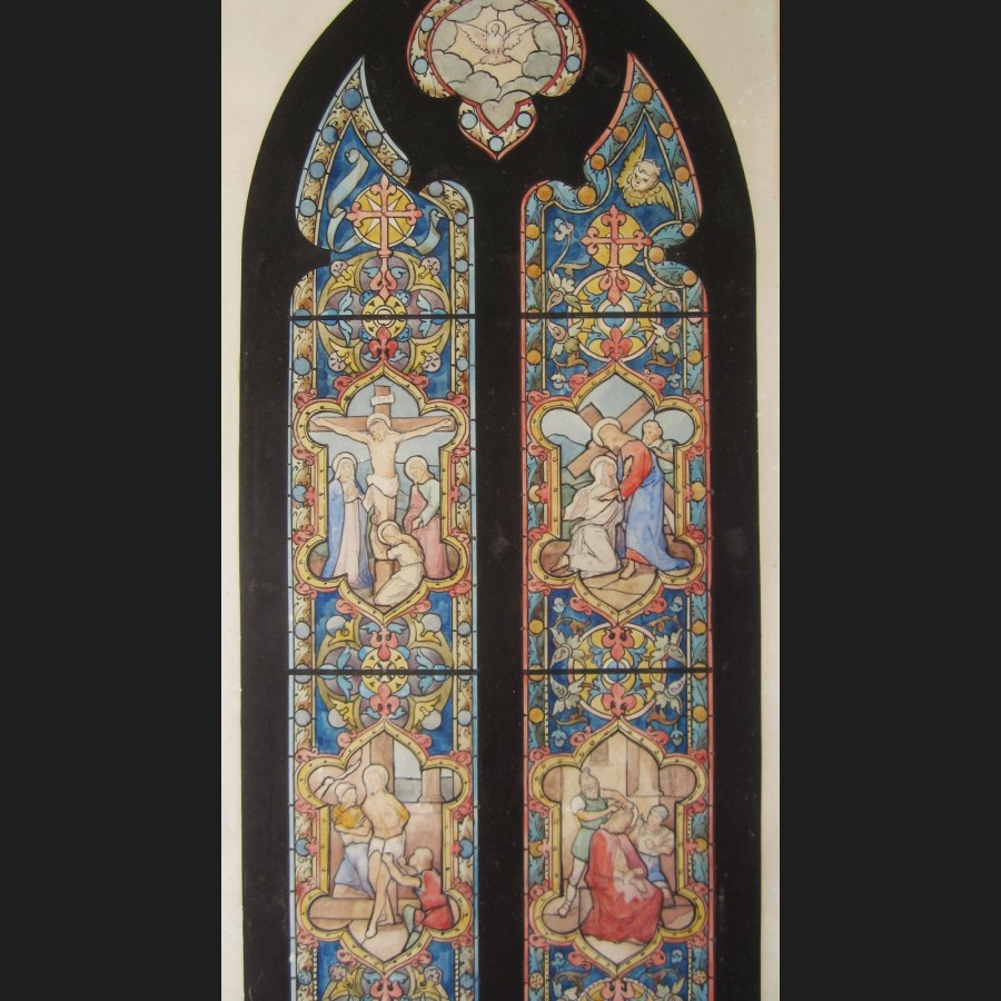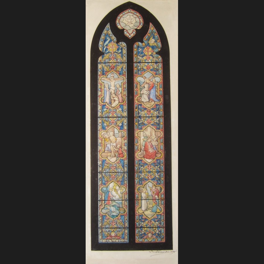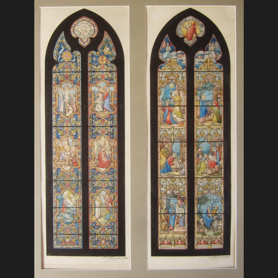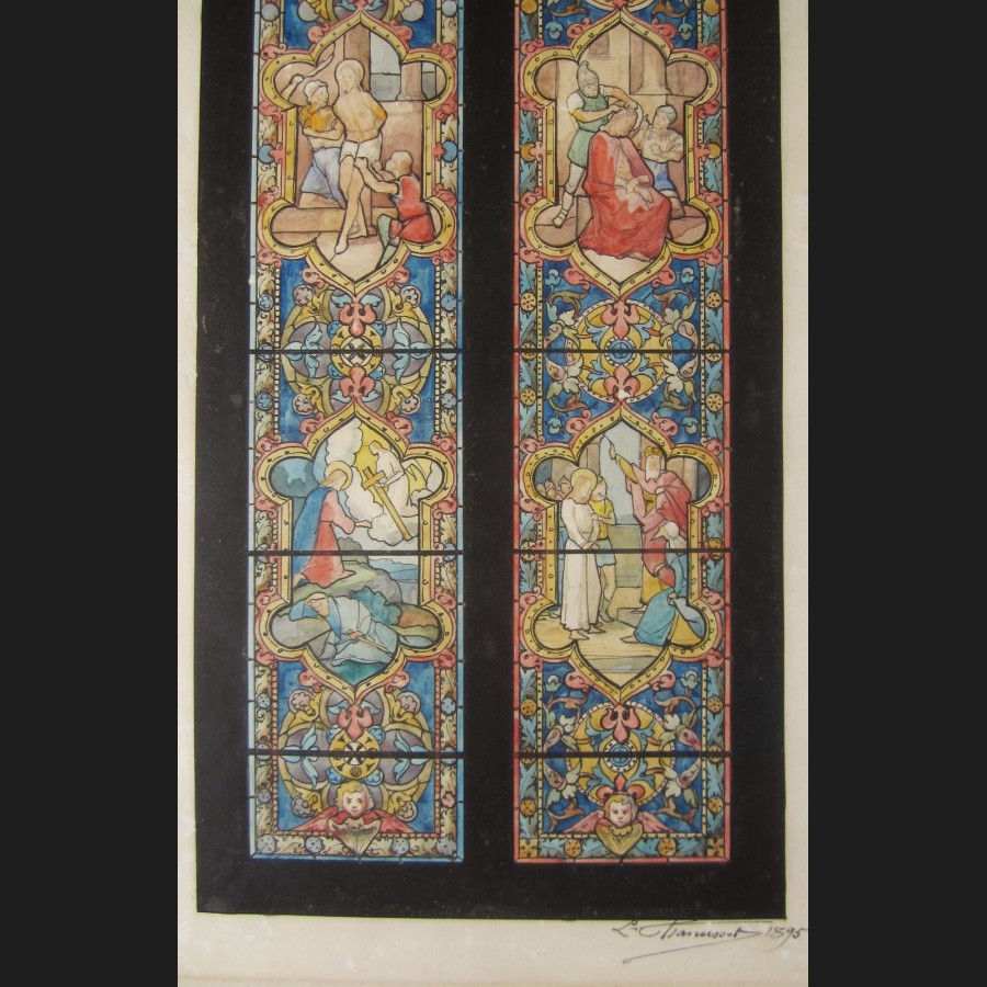 Étienne-Louis CHANUSSOT, Projets de vitraux, paire d'aquarelles