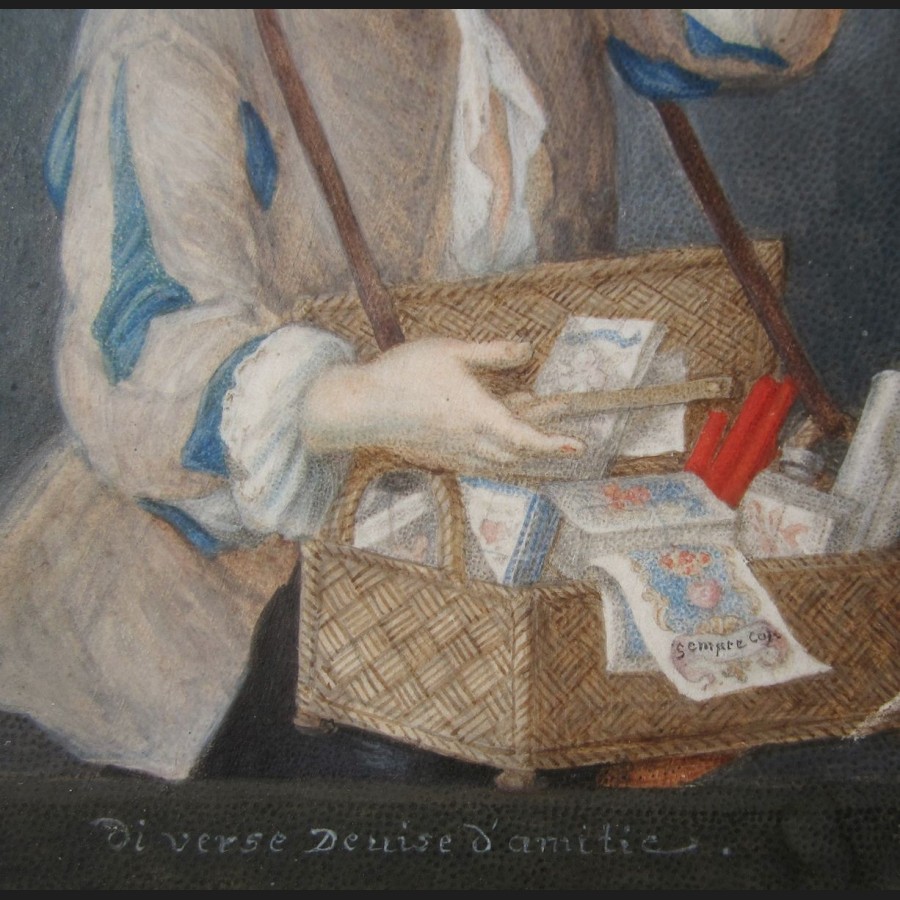 École FRANÇAISE du XVIIIème siècle, Le marchand ambulant, gouache