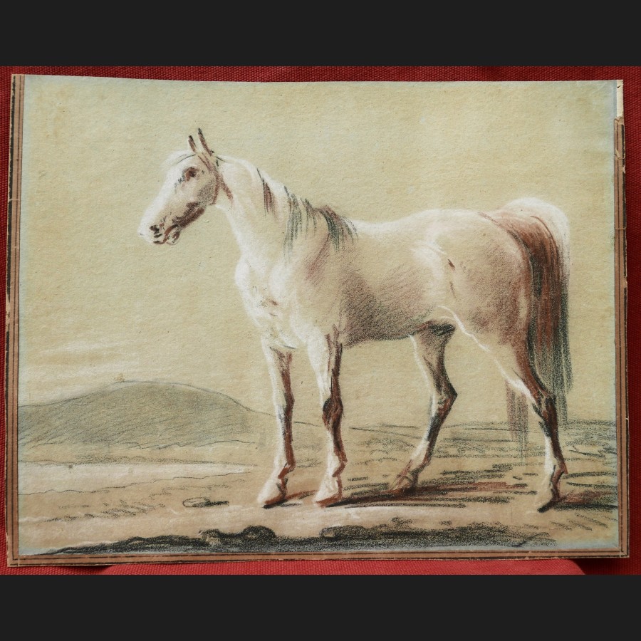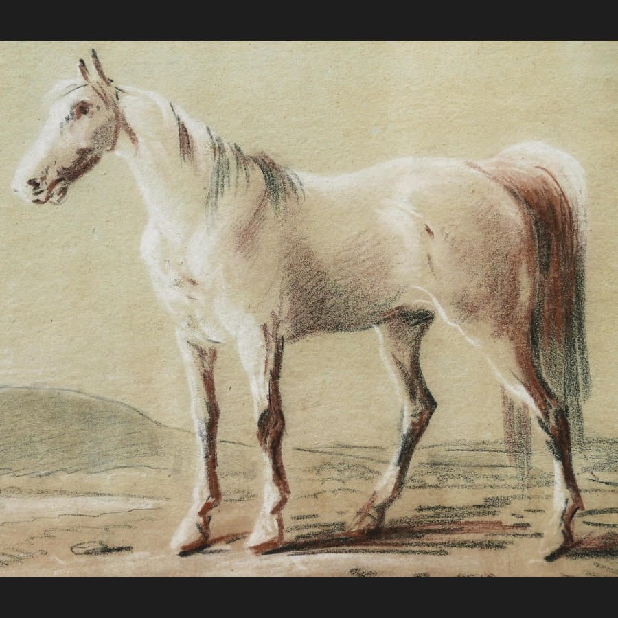 École FRANÇAISE, première moitié du XIXème siècleCheval blancCraie noire, craie brune et craie blanche sur papier28,5 x 36,5 cm