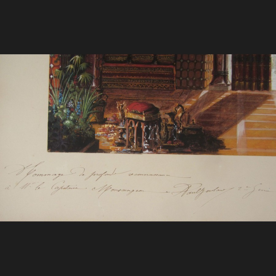 Dédicacé en bas à gauche Hommage de profonde reconnaissance à M. le Capitaine Monsaingeon / A Paul Goubaud (?) 2ème Génie, daté en bas à droite 1er mai 1884