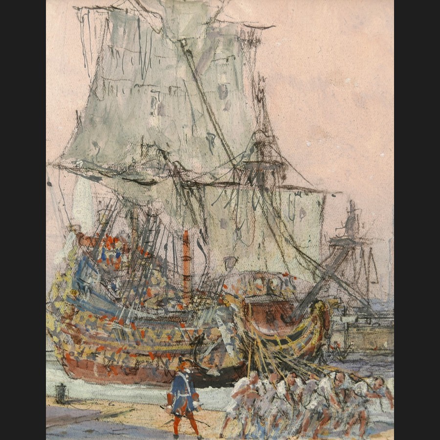 Albert SEBILLE, Le Bassin du Roi – Arsenal de Dunkerque – Règne de Louis XIV, gouache